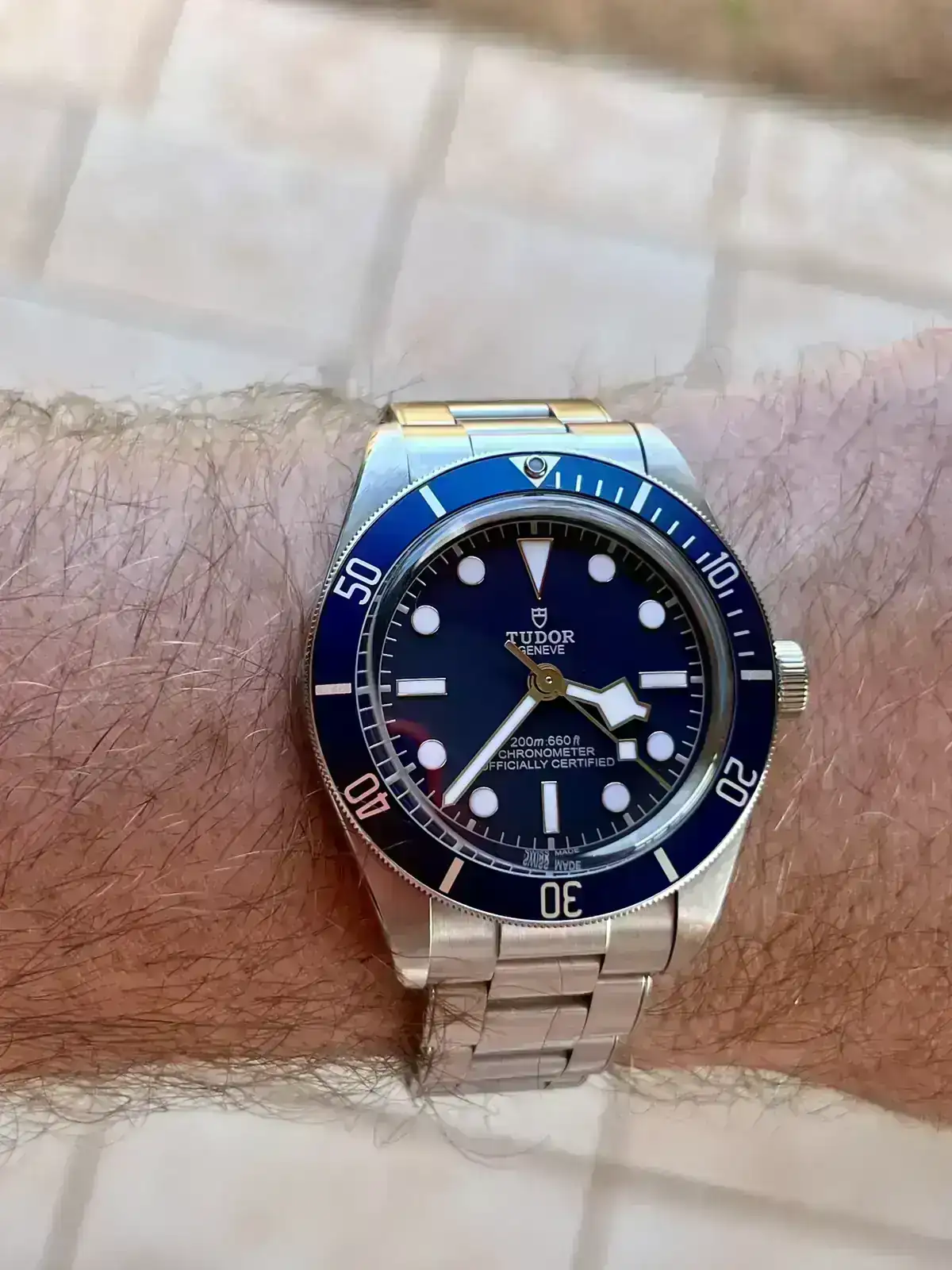 Es de seguna mano pero en bastante buen estado, además de ticket de compra+factura de Tudor Castellana, caja y tarjeta de garantia nfc que funciona y encaja.