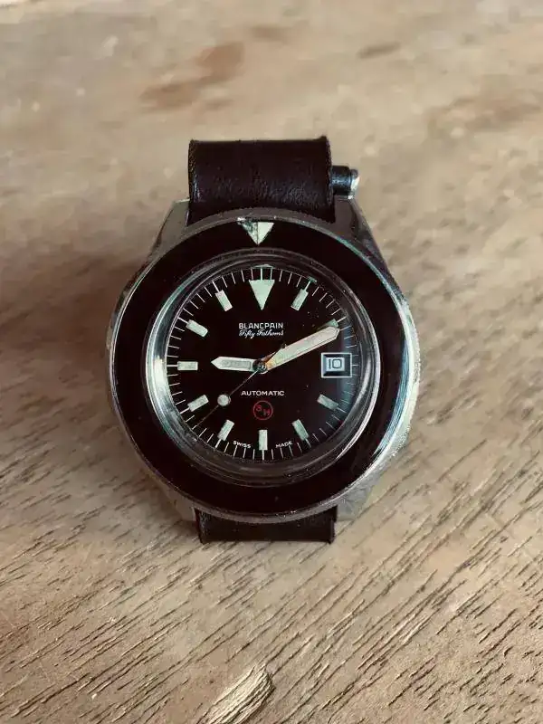 Blancpain Fifty Fathoms bund 3H. La verdad que tiene una prestancia increíble puesto en muñeca. Una pasada. Feliz como una perdiz