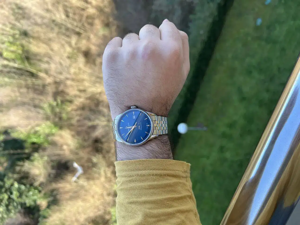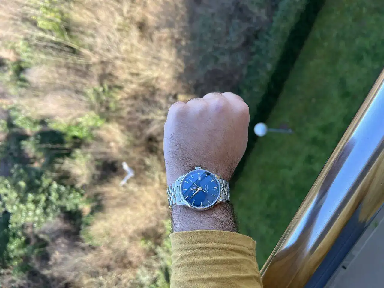 El dial es MUCHÍSIMO más vistoso y bonito en persona que en foto; no es un reloj para nada fotogénico; los tonos azulados cambiantes y la profundidad que tiene es, a mi modo de ver, preciosa.