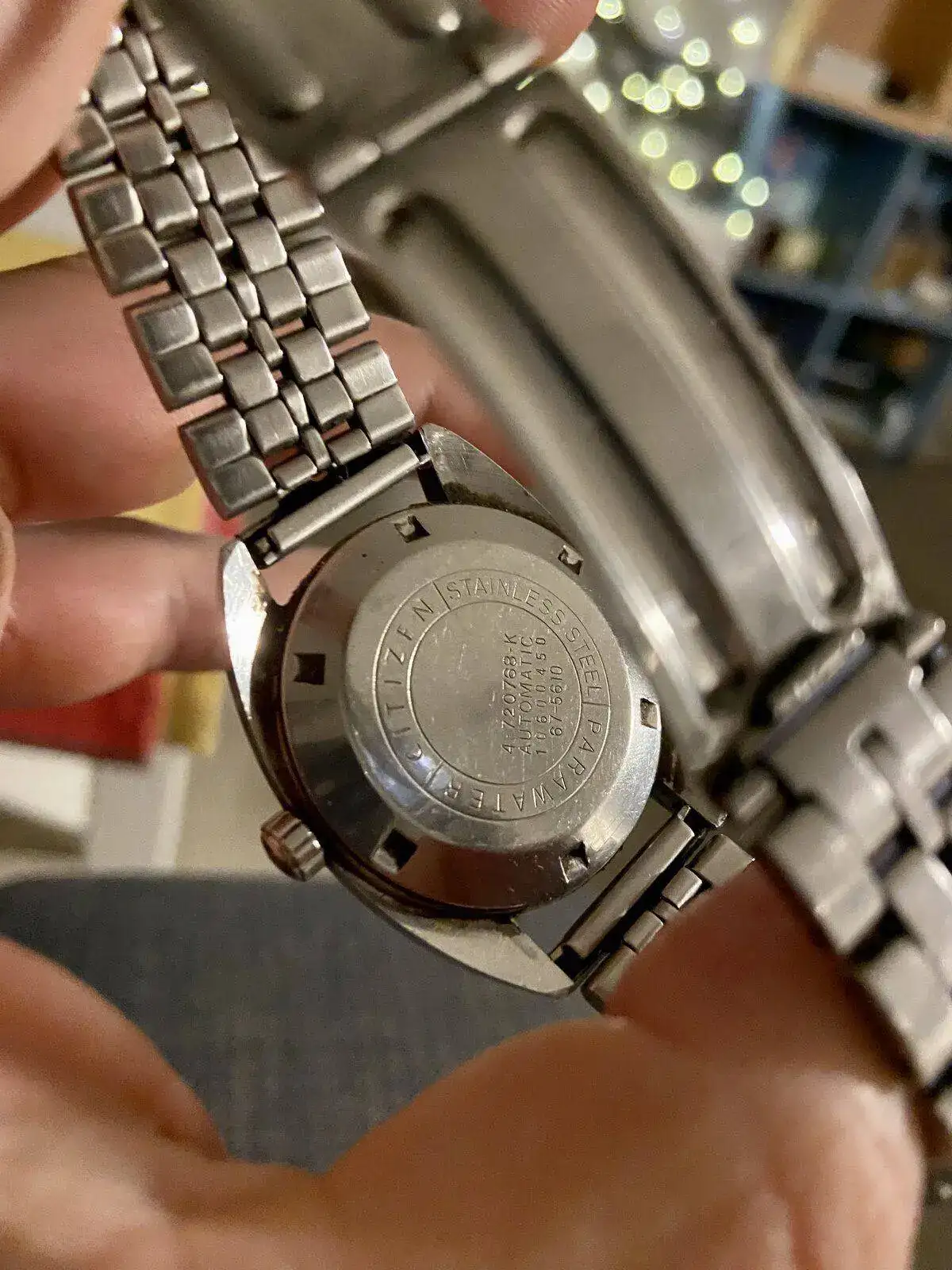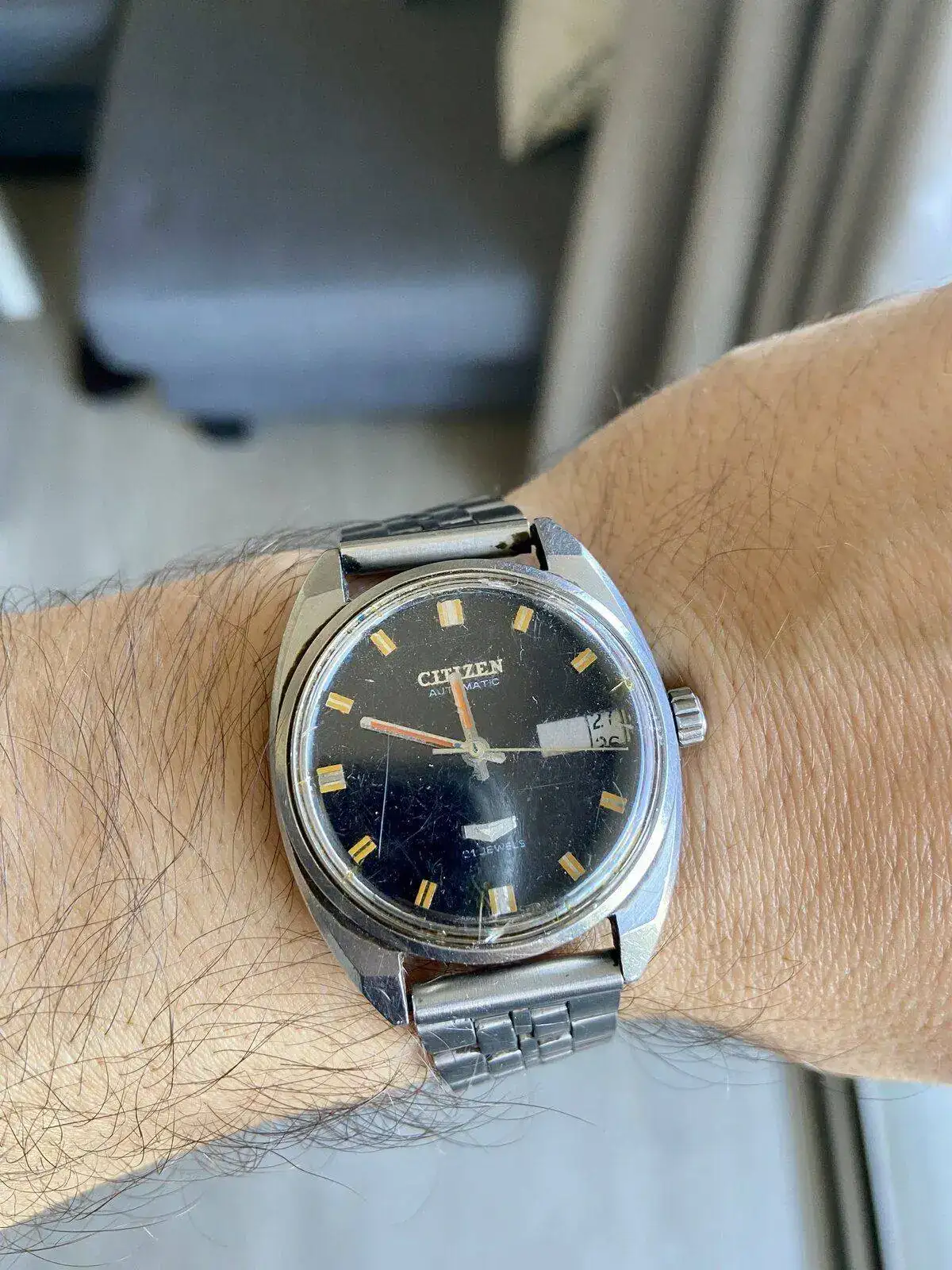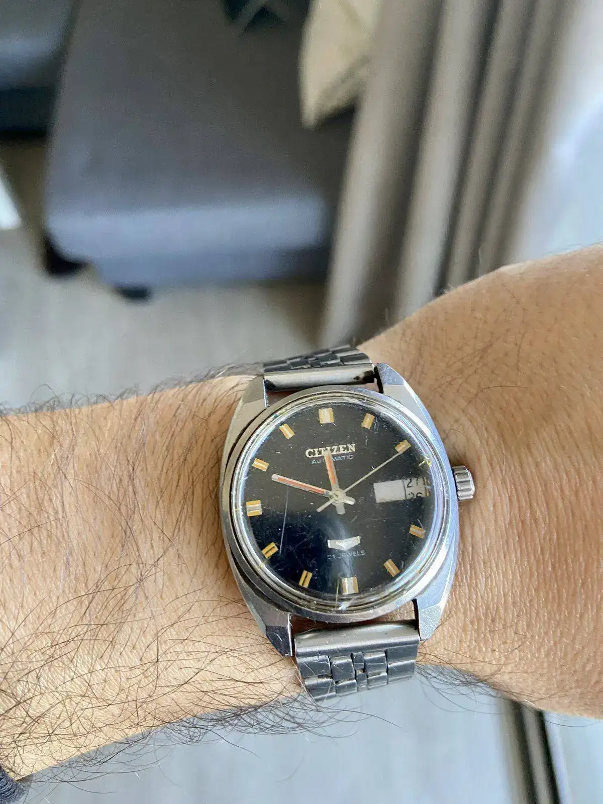 Ayer era el 27 aniversario del fallecimiento de mi padre por lo que aproveche para pasar por casa de mi madre y tomar un café, pues bien cual es mi sorpresa cuando en un momento dado me dice que tiene un reloj para mi, que es el que había usado mi padre durante más de 20 años y uso hasta su último día. ( Cuando falleció yo tenía 9 años y la verdad que no lo recordaba) pues bien ante mi emoción me lo da y compruebo que un Citizen day date automático que al dar un par de vueltas a la corona “vuelve a la vida” como si nada y arranco perfectamente!!!