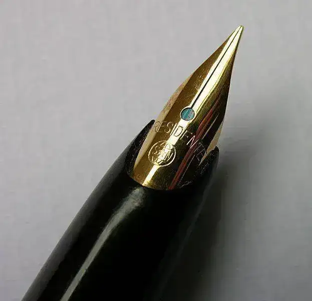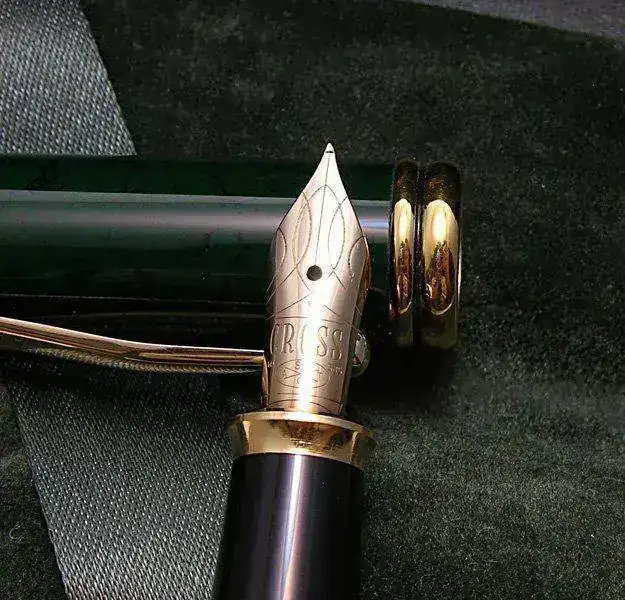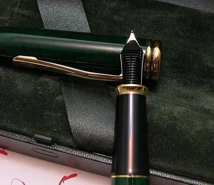La construcción es extraordinariamente robusta y el grupo de plumín y alimentador con su alojamiento y el anillo dorado de la boquilla salen a rosca fácilmente (Atención, la rosca es inversa, por si alguien lo intenta con la suya) por lo que la limpieza es más simple. El cuerpo es completamente metálico, de bronce o latón, posteriormente lacado, y resulta contundente y denso, pero está muy equilibrado. A aquellos compañeros acostumbrados a los plásticos diversos, este modelo les resultará demasiado pesado y compacto. Pero también es una de sus principales cualidades. Todas las roscas son también metálicas, por lo que no existe el odioso problema de muchos modelos, incluso muy caros, de presentar roscas de metal y plástico que acaban destrozando el plástico por ser el material más débil.