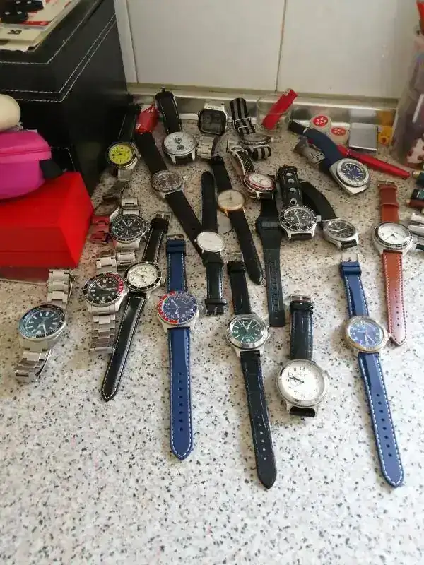 mi problemilla ahora es que ya veis que la caja ya no da para mas. Tengo 10 espacios , tengo 11 relojes. Como uno lo llevo puesto , pues voy tirando, pero es que me va a llegar uno nuevo, un Tempore lux con seiko NE15 , un diver de una micromarca española financiada por kickstarter y deberia decidirme por deshacerme de alguno. Pero es que le tengo cariño a todos, algunos por su historia detras aunque ya no me los ponga, los demas simplemente porque me gustan.