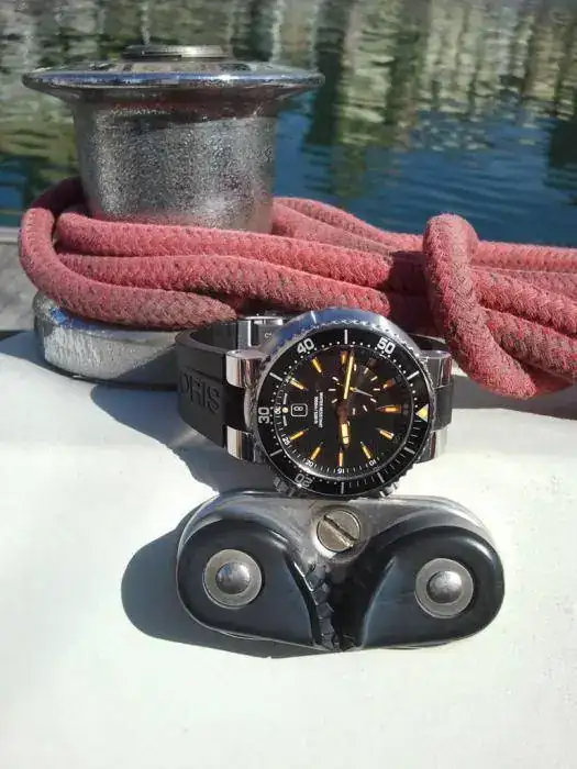 . El Oris ss naranjito de sobra conocido por aquí, reloj instrumento contundente a la par que bonito que va para clásico y un Tag Heuer Aquaracer crono calibre 16 algo menos visto este. El Tag es otro estilo, menos diver quizá pero que transmite unas sensaciones increibles, muy bien acabado y unos detalles en el bisel de caucho que me encantan.