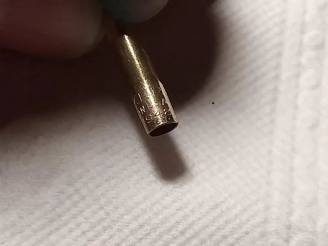 Y después de ese momento de euforia, me embargó otro de desasosiego. Cuando la vi más tranquilo, me pareció que el dorado era estridente, más naranja que amarillo, y no encontré la marca gold o la referencia a los quilates del baño de oro. En el lugar donde debía estar esa marca, solo rezaba INDUSTRIA ARGENTINA, y ya todo fueron dudas. Dudé que el capuchón fuera de oro, luego de que lo fuera el plumín y al final ya de todo. Solo me aliviaba pensar que había pagado 90 euros sin regateo alguno, que parece un indicador de que no debe de ser algo falso, y pensar también que el vendedor supiera lo que vendía. Recordé el hilo de un forero que comentaba su angustia cuando compró una Montblanc 146 que no se ajustaba a los cánones y no paró hasta cerciorarse de que era buena. En esas estoy yo ahora.