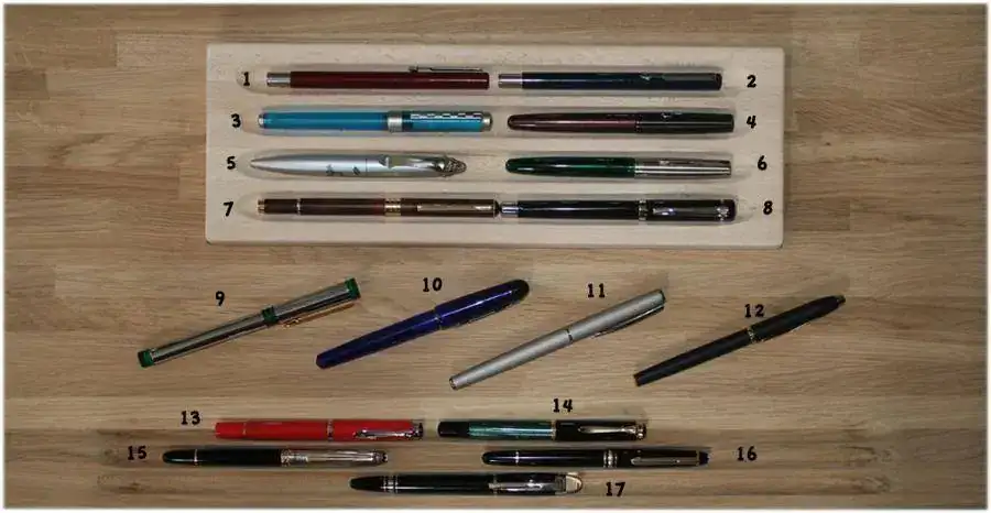 9: Waterman, no sé el modelo. Otra de las más, si no la más, veteranas. Creo recordar que tenia de compañero un boli que está desaparecido en combate. Punto F