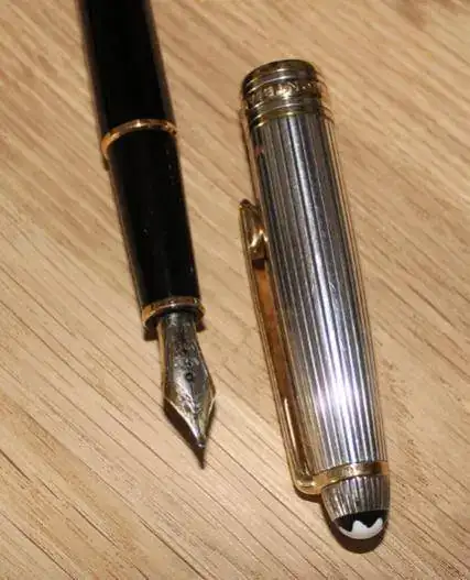 15:Montblanc Meisterstück, plumin bicolor y punto M. El capuchón es de plata maciza (Ag 925). Desconozco más datos sobre el modelo (Regalo de mi costilla)