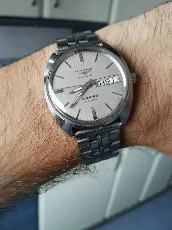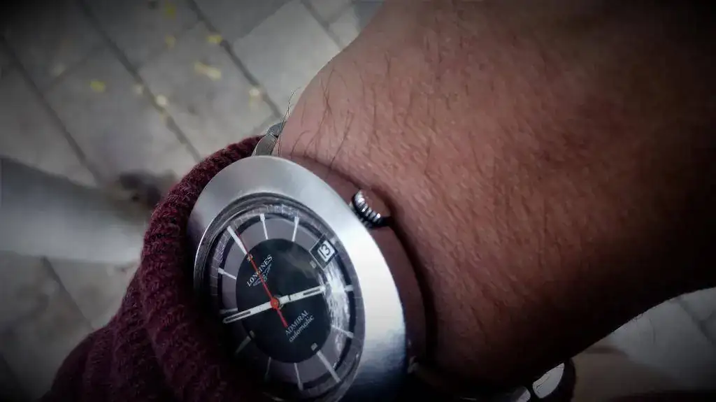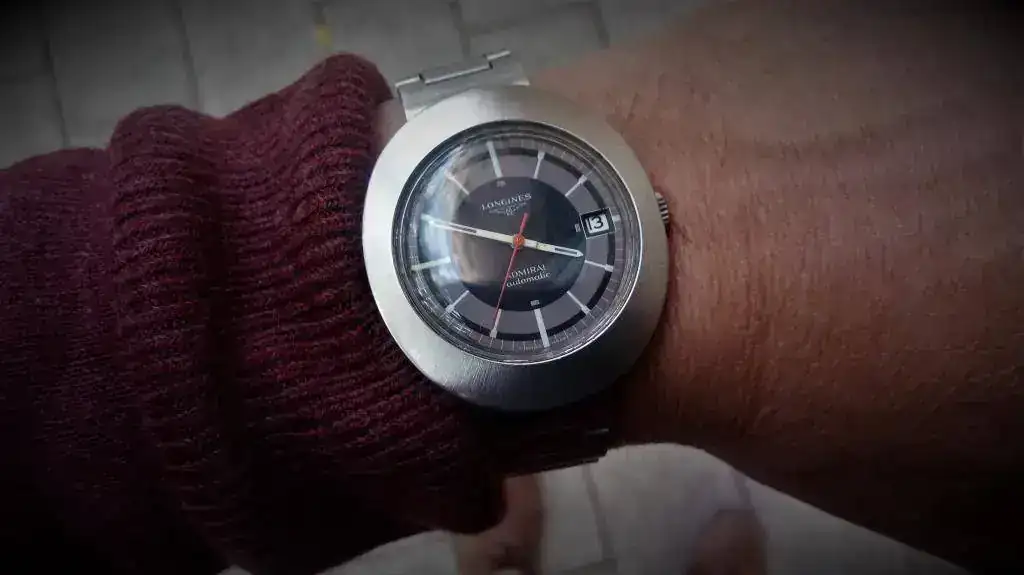 El reloj en cuestión se trata de un Longines Admiral, perteneciente a una colección que apareció en 1972, año en el cual Longines fue patrocinador oficial de las tristes olimpiadas de Munich, recordadas por los lamentables sucesos acaecidos más que por el espectáculo de los deportes. Esta colección esta compuesta por cuatro tipos diferentes de cajas, todas ellas muy llamativas por sus con diales muy deportivos por sus colores. Estos relojes, respondían al espíritu "moderno" y "tecnológico" de la época, saltándose los patrones clásicos y crean una ruptura estética con los relojes más sobrios de los 50 y de los 60.