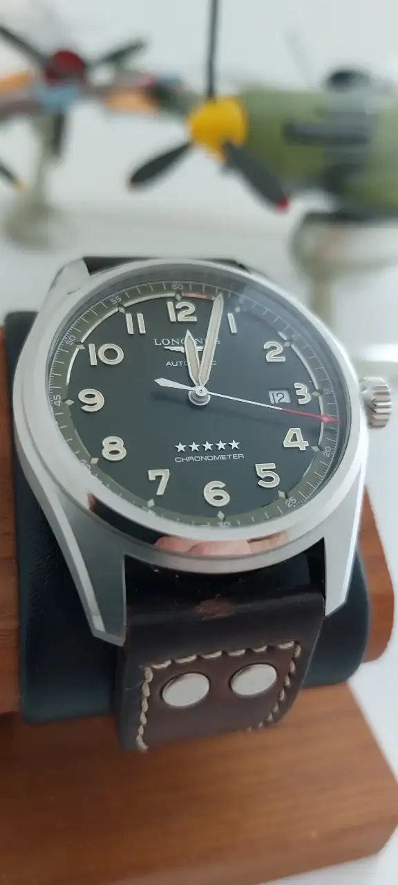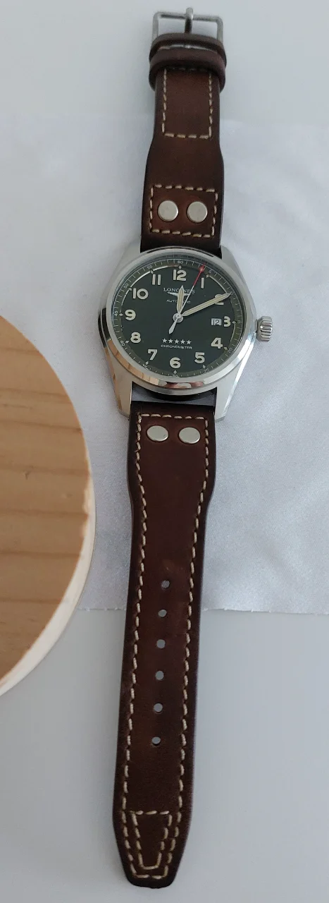Os presento a mi nuevo reloj, el longines spirit de 42mm, con brazalete de acero, al que le he añadido una correa de cuero pilot, de nuestro admirado artesano Jacobo.