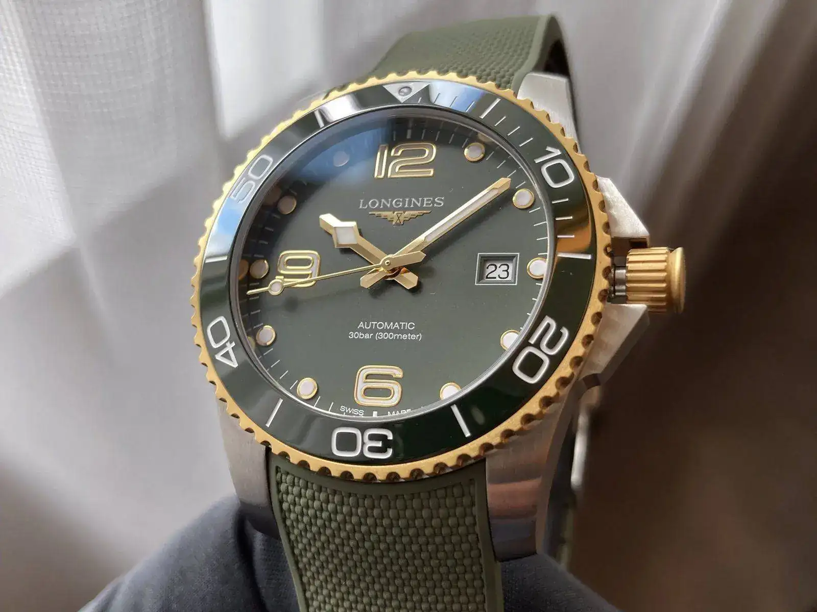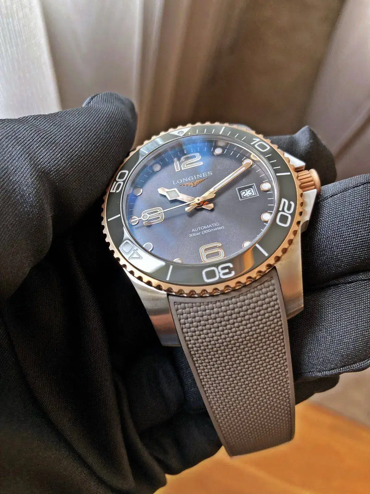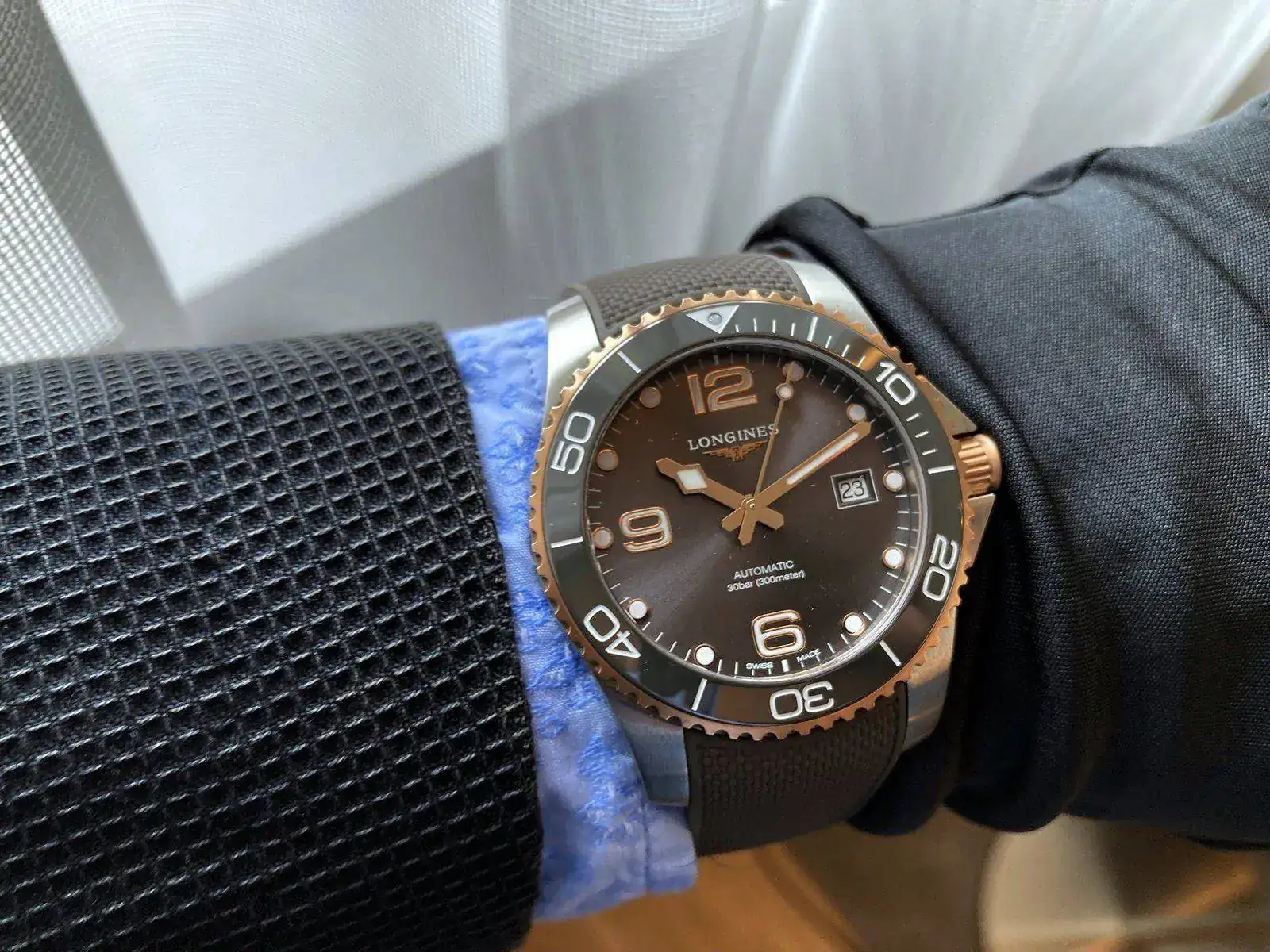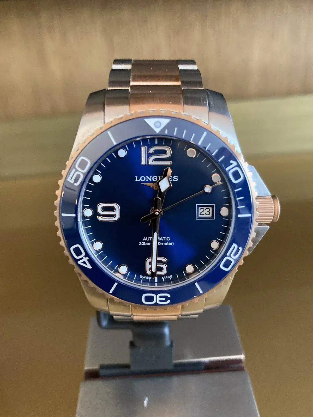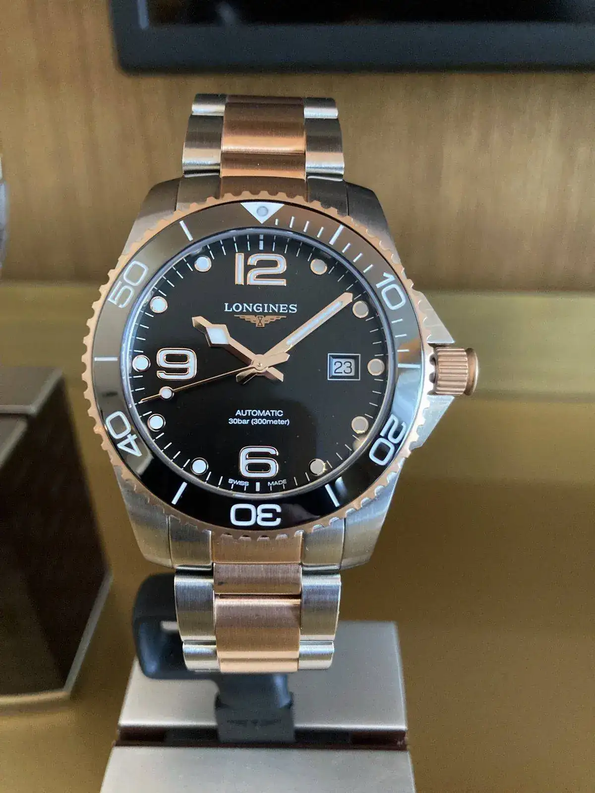 No sé realmente si se traían como novedad, pero vi por primera vez en directo los Hydroconquest mixtos acero-oro rosa (bueno, PVD oro rosa) y la verdad que ni tan mal, como suele decirse...