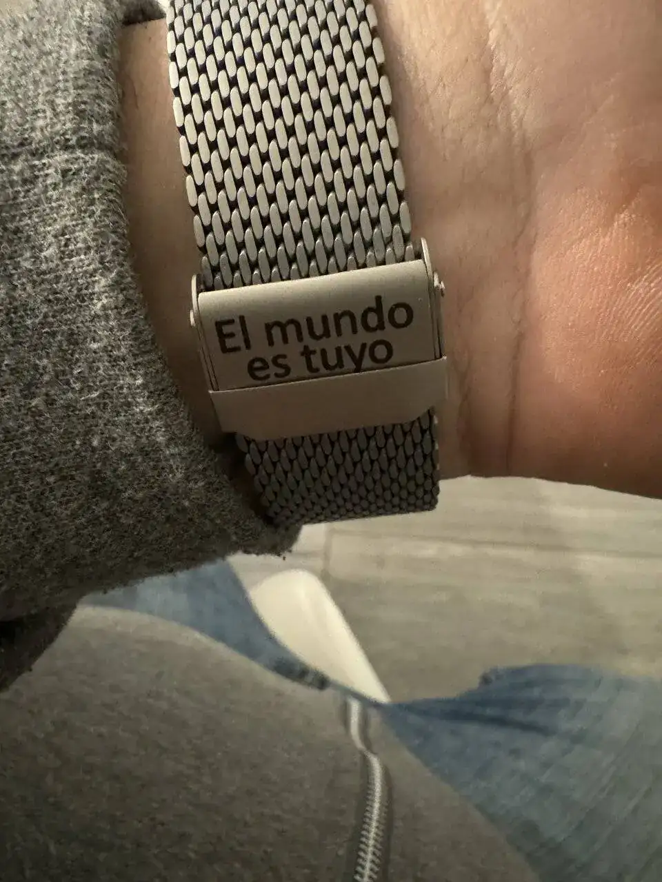 La correa la personalice con mi nombre en el interior ( prueba para ver cómo queda el grabado ) y una frase que me encanta de una de mis películas de culto favoritas el precio del poder que dice lo siguiente. EL MUNDO ES TUYO , frase que le queda genial al reloj. Para muchos seguramente una aberración pero la correa siempre la puedo cambiar, no es una modificación o personalización que afecte a la originalidad ni estado del reloj