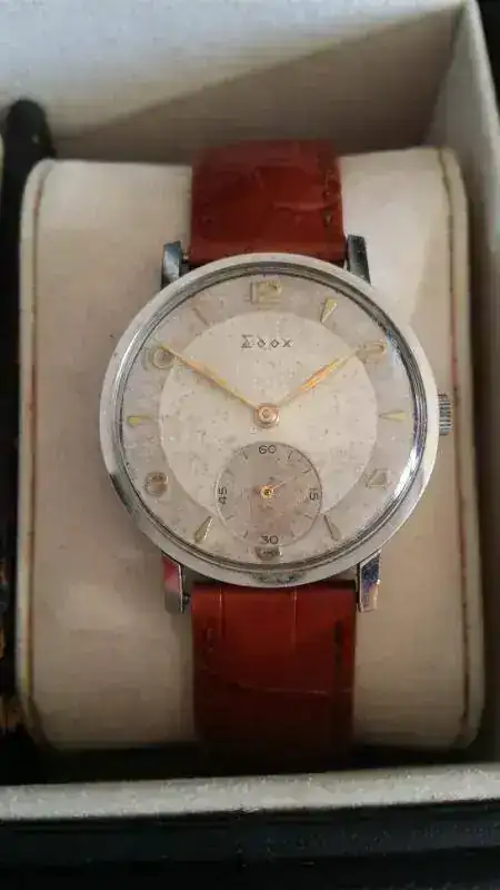 Edox de cuerda manual, una preciosidad, se lo dejé a mi esposa y le dio un golpe con el muro de la catedral na menos...pendiente de reparar.
