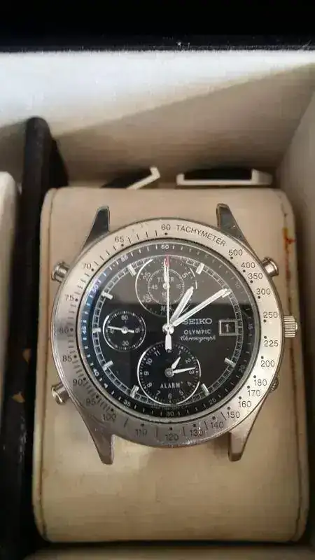 Seiko Olympic, ahora sin brazalete. Un calibre muy interesante con marcha atrás.