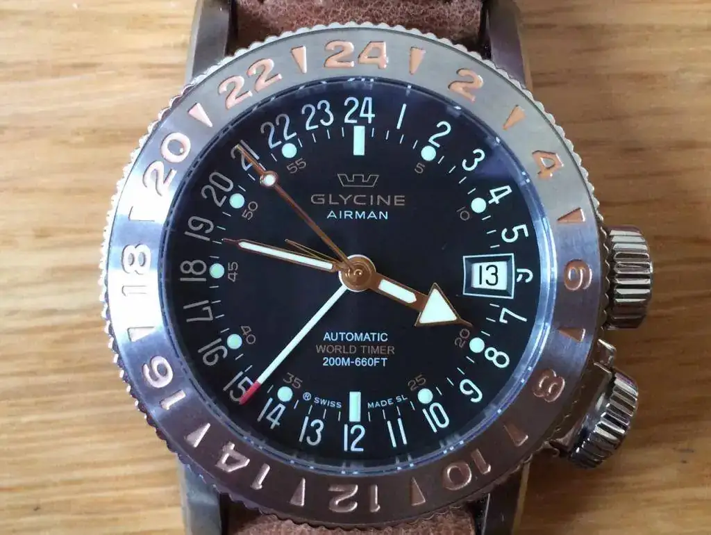 Poco que decir de este reloj. 39 mm (que le va bien a mi muñeca de 15,5). Fondo visto, doble cristal de zafiro, automático con reserva de 42 horas, tres husos horarios, y aunque yo creía que era un 24 horas, las agujas dan dos vueltas en 24 h. O sea lectura normal. La que es 24h es la aguja Gmt. Y el bisel, lógicamente. El calibre es un etasa modificado en un 90% (que digo yo que ya puestos, podría llevar manufactura no?)