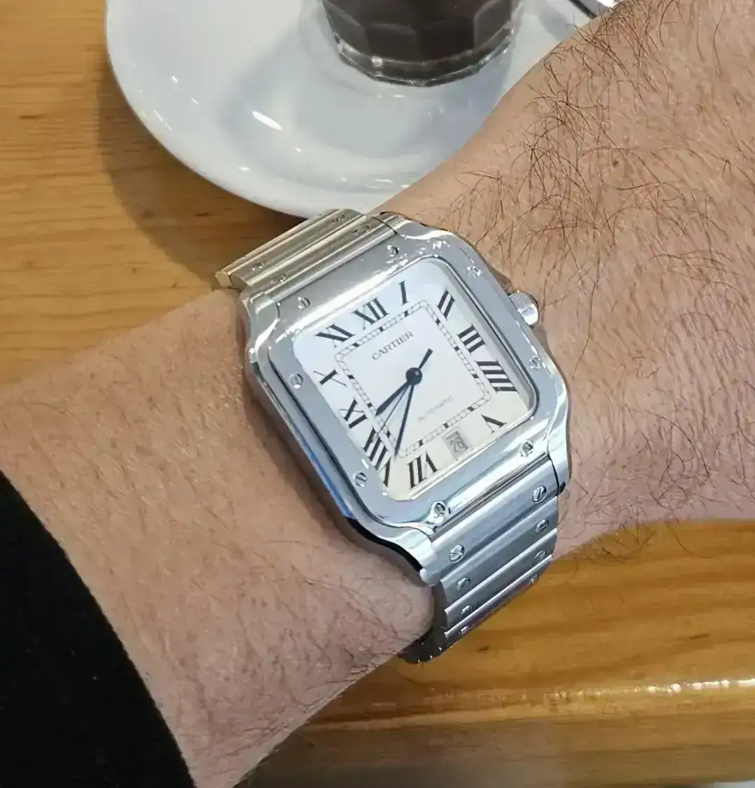 Es un privilegio para mi estrenarme en este espacio del foro con mi primer Cartier y, concretamente un Santos tamaño grande modelo actual. Tengo una colección muy escueta y básicamente de piezas Rolex, mi marca preferida, por lo que esta entrada rompe totalmente con lo que hasta ahora he ido llevando. Debo decir que la calidad de este Santos es muy muy alta, y saber que este magnífico diseño tiene más de cien años todavía lo hacen más especial.
