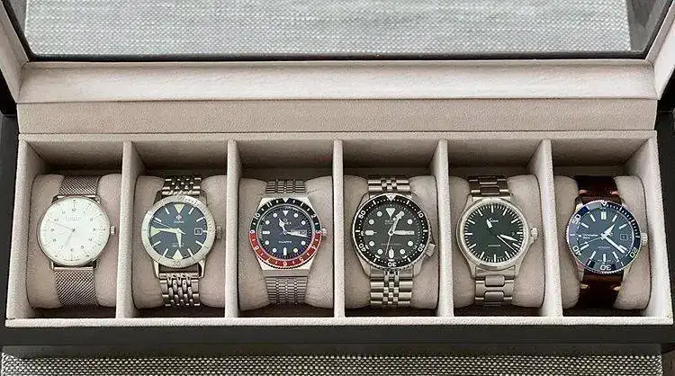 Vaya por delante que sigo encantado con la adquisición de este reloj y no me lo quito desde que llegó a mis manos, o muñeca, para ser más precisos. No obstante, para el que esté valorando la compra y no quiera leerse el hilo entero, hice algunas consideraciones en el post #60 sobre la cuerda manual, el AR y el cierre.