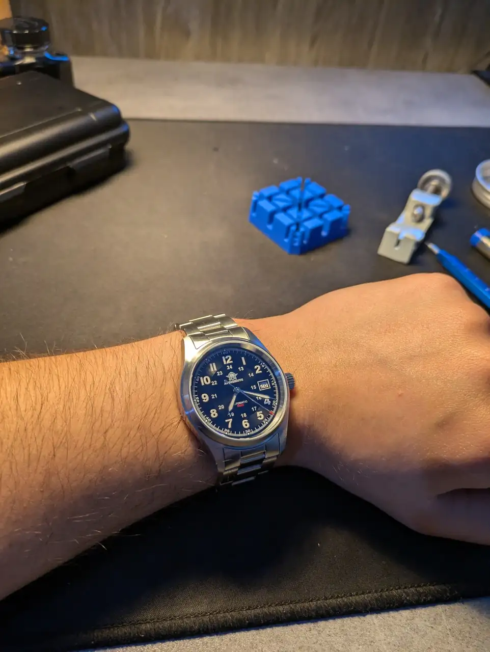 Buenas tardes a todos, pues eso, como muchos sabéis llevo un tiempo con ganas de meter en la caja un nuevo diver, los candidatos son: Un Tag Heuer Aquaracer en cuarzo y un Seiko spb143/453 (62+), tengo serias dudas en el caso de coger el Seiko por cual decidirme porque no los he visto en persona y no sé cuál me quedaría mejor, el tercero en discordia sería un Seiko King Sumo, pero opción que no llega al nivel de objeto de deseo del 62+ sino más como si tengo el 62+ tampoco me importaría tener el king Sumo. Bueno que me lío, en estos últimos años me he prometido reducir mi amplia colección (llegaron a ser 100 y pico) y ahora con esta nueva incorporación son 46, sigo con la intención de seguir bajando número, me he marcado a medio plazo la entrada del Tag Heuer o el Seiko arriba mencionados, prometiendome a mi mismo, quedarme tranquilo una temporada y disfrutar de los relojes, pero como muchos sabéis a veces nos dejamos llevar por las ofertas y en este caso el otro día viendo el foro vecino y viendo una buena oferta de AliExpress me animé a comprar el protagonista del hilo, se que muchos diréis, haber ahorrado el dinero, pero yo sé que el tag y 62+ van a tardar un poco en llegar...(El que llegue de los dos) Así que me apetecía darme un capricho con una chuche de cara a trotarlo en verano, el elegido es el Addiesdive "Monster". Es un reloj que en la versión de Seiko siempre me llamó la atención pero sus precios actuales, nuevos y de segunda mano, me tiran un poco para atrás y me apetecía tener la esencia estética de este reloj en mi colección así que me lancé aprovechando unos descuentos de AE. La verdad es que la primera impresión es muy buena, el dial tiene un efecto olas de mar y se percibe de buena calidad(contando el precio), en mi emho una especie de Cap.Willard de Steeldive para que os hagais un idea. Tiene presencia en la muñeca y un buen peso, el movimiento, nada que decir el tipico Nh35 que todos conocemos, barato pero fiable, pero creo que he acertado plenamente para reloj de piscina y playita para este cada vez más próximo veranito.Siento a todos por el rollo, os dejo las fotos del protagonista