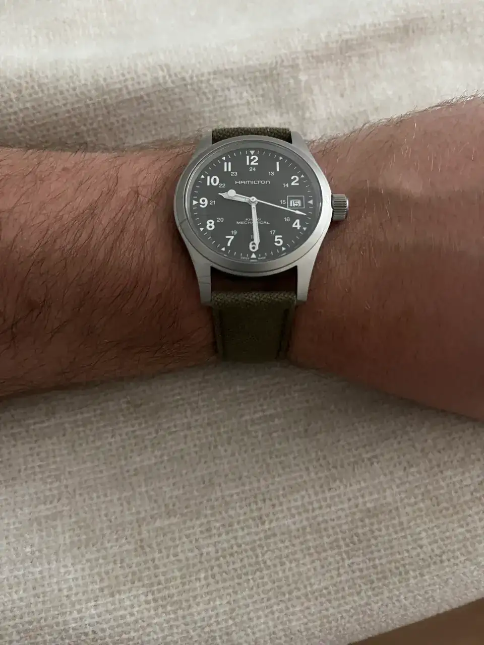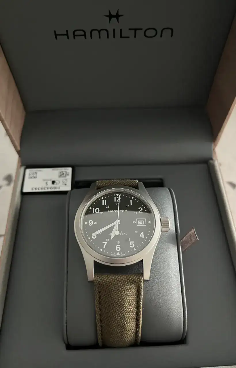 Como publiqué en otro hilo, los reyes magos me trajeron un PRX de quarzo, que entre idas y venidas sobre si lo cambiaba por el automático, color de la esfera, etc. apareció este Hamilton y me encantó.