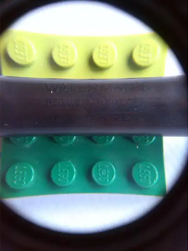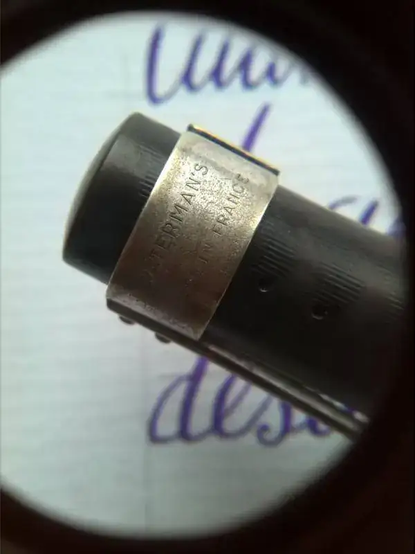Al final del cuerpo de la pluma, en sentido transversal tiene grabada una inscripción muy similar a la que muestro en la foto en sentido longitudinal, solo que añade el MADE IN USA. Gracias a todos por vuestra atención.