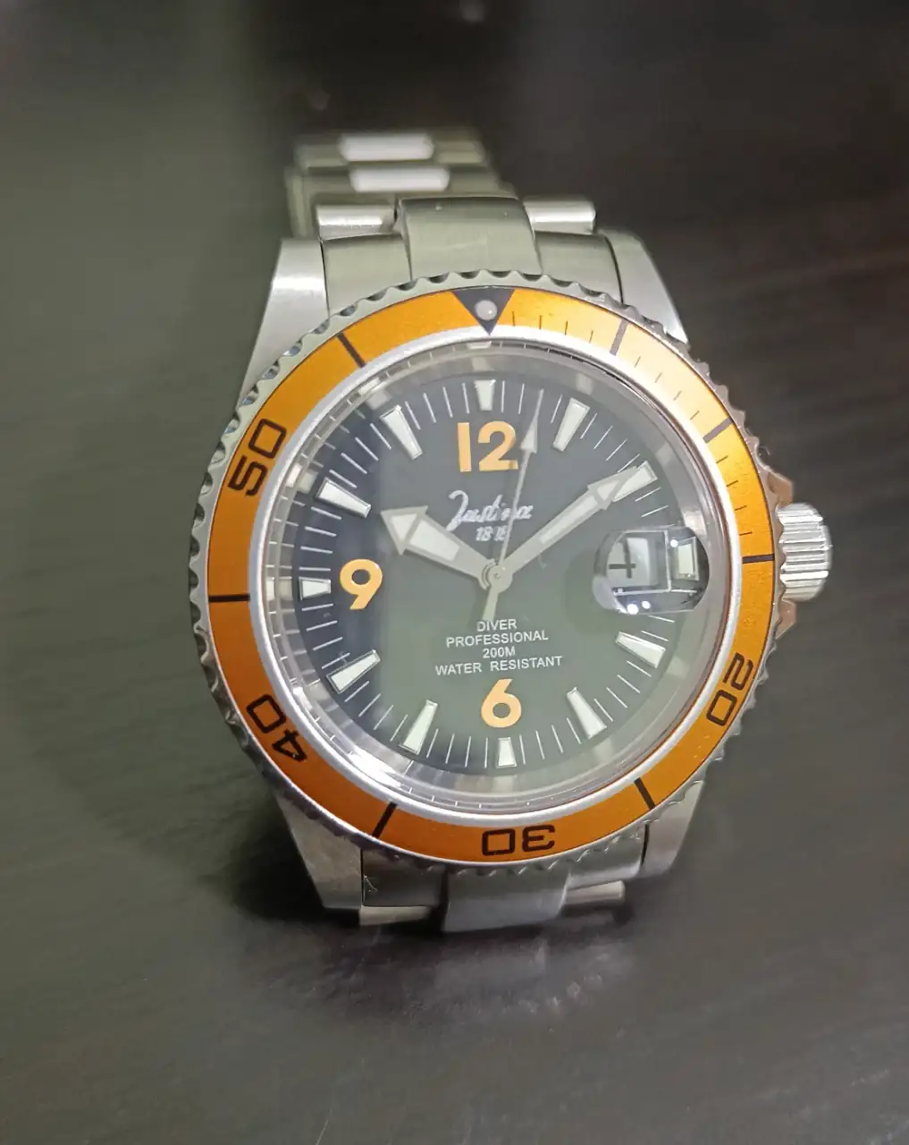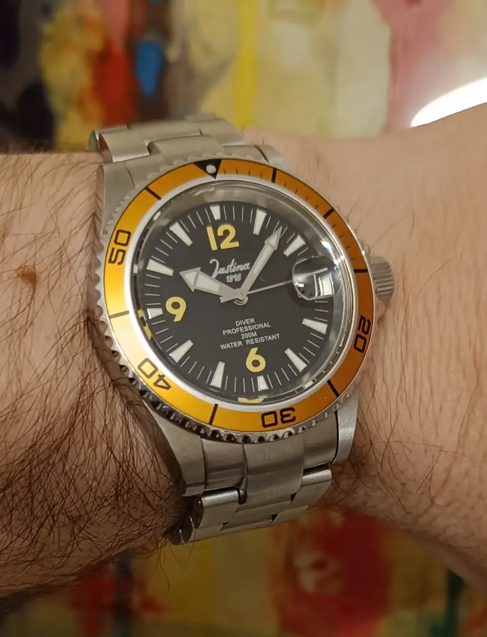 Despues de muchos años tenía la ilusión de conseguir, un reloj de la marca Justina, ya desciendo de Palentinos y quería un reloj de mi tierra. Me ha costado bastante tiempo encontrar uno, que aunque no es de los primeros modelos, ya que son de diámetros muy pequeños y sabía que no les iba a utilizar, encontré por fin este modelo, con maquinaria suiza y cierta inspiración a algún modelo bastante conocido.Asi que aunque no sea una gran pieza estoy contentísimo con el😁😁😁. Además el estado está impecable sin roces ni nada. Bueno hay van las fotos.