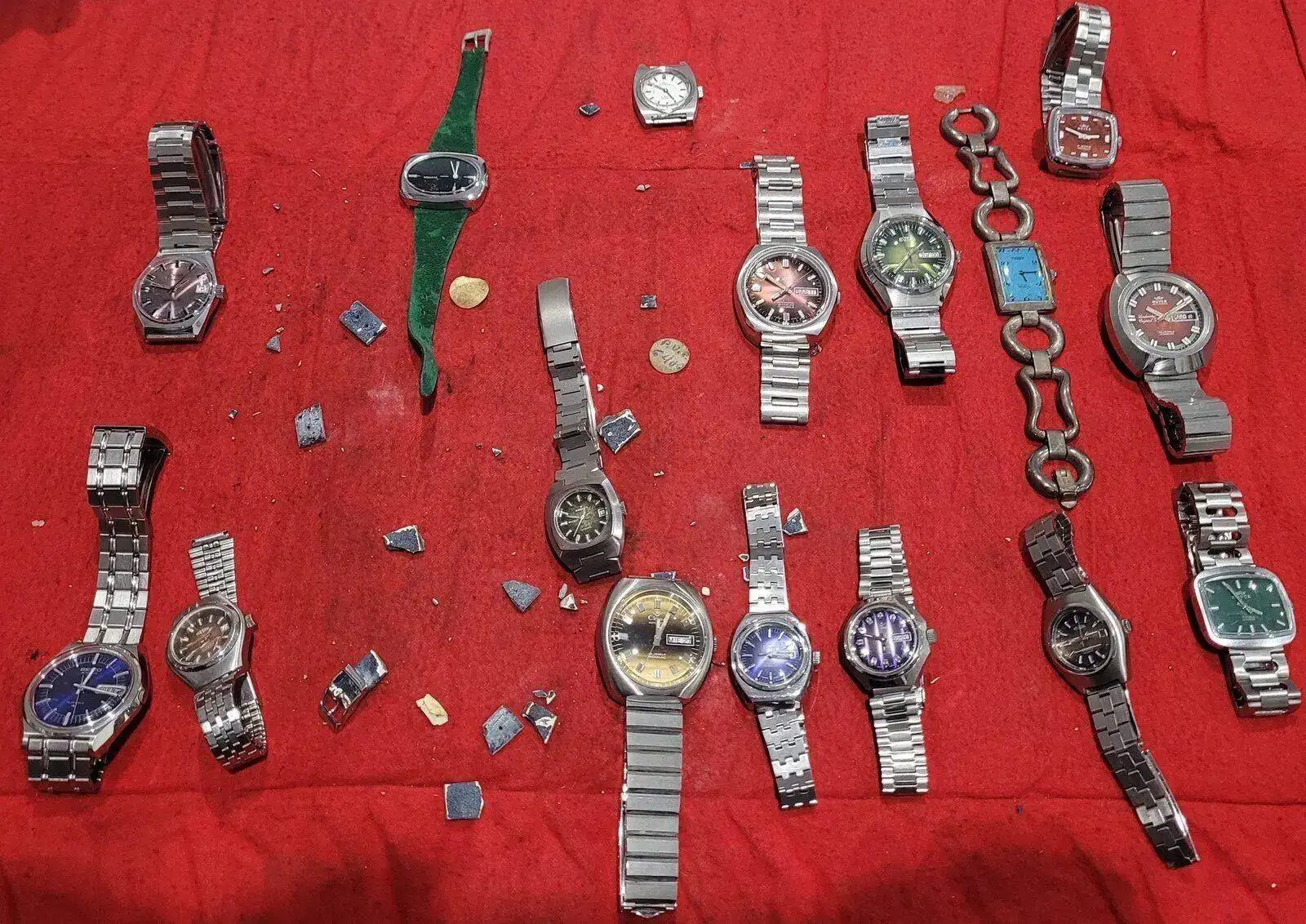 . Estoy muy contento con la compra que hice pero sobre todo por poder compartir con vosotros la historia y las imágenes.Perdonad por las piezas sueltas que aparecen por el medio de la primera foto y la suciedad de algunos relojes pero las hice nada más abrir el saco.