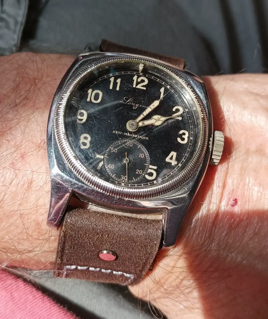 Total en un estire y afloje llegué a la conclusión que quería ese reloj más que nada en el mundo aun que solo tuviera la caja.Ver el archivos adjunto 2889505Ver el archivos adjunto 2889506Ver el archivos adjunto 2889507Ver el archivos adjunto 2889508Longines Heritage 1935 Pilot Majetek edición limitada es te es un reloj que me voló la cabeza, viene originalmente con esa correa de piel negra pero por ser militar le puse esa NATO de piel cafe clara y creo por ser un reloj militar se le ve muy bien.