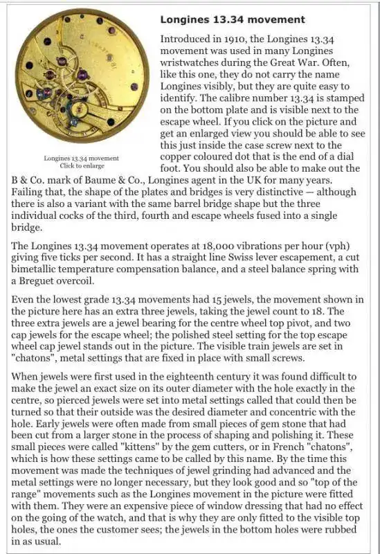 Pueden apreciar que es un reloj de dos tapas traseras (como un bolsillo) de 15 joyas, teniendo asas fijas para la pulsera y algo interesante de mencionar son las 3 estrellas doradas que tiene debajo del nombre Longines, mismas que se usaban durante los años veinte principalmente en el mercado de Sudamérica para identificar relojes con un movimiento de alta calidad.