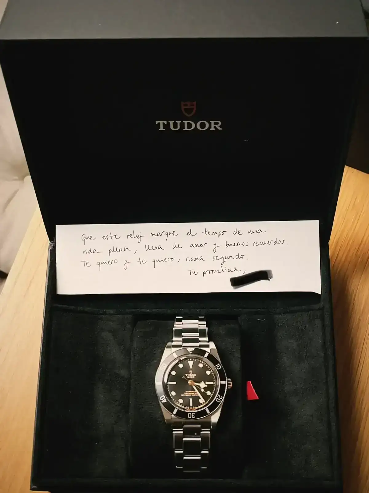 El reloj lo recepcionó mi pareja y al volver a casa me había dejado el reloj con una nota...