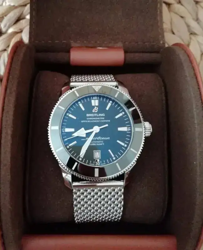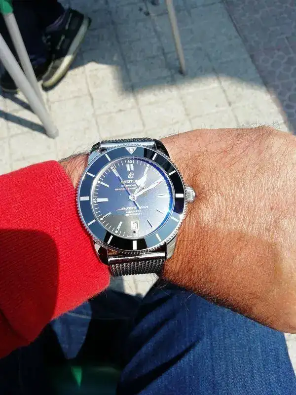 El reloj en cuestión es un Breitling SOH II 46 mm manufactura con bisel cerámico. Os aseguro que al abrir la caja y extraerlo, creí que era una pieza a la cual habían olvidado poner cristal !!!