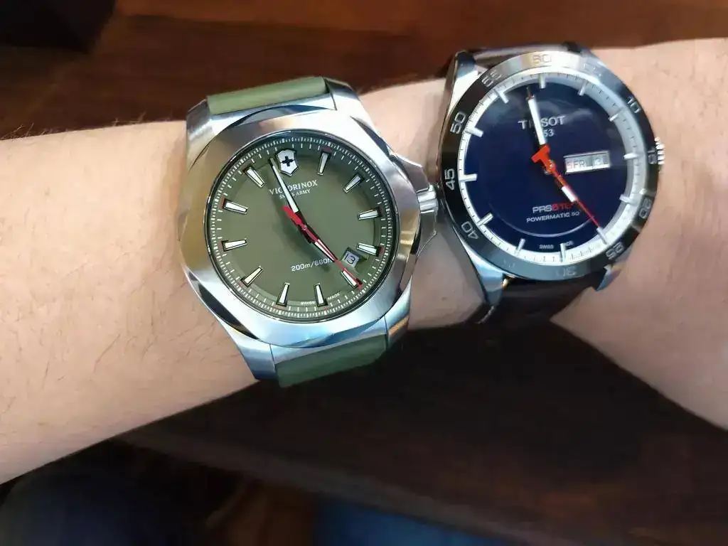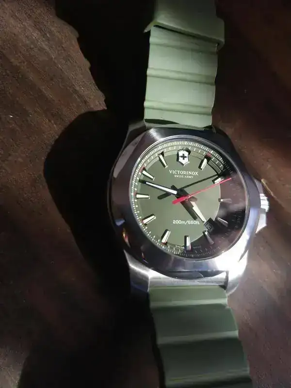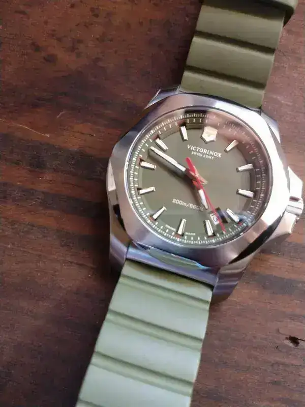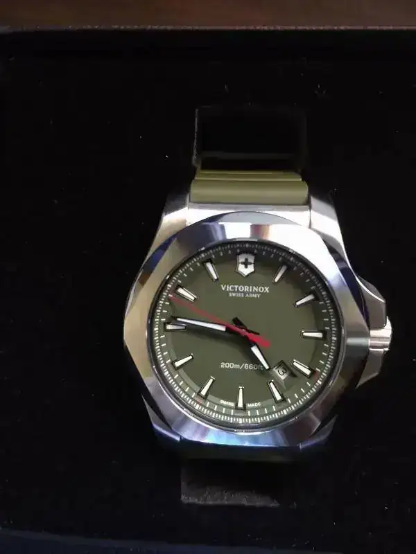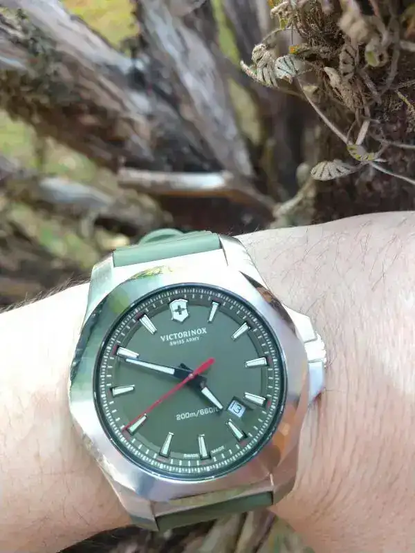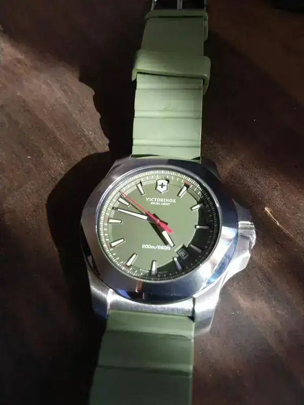 Hola colegas, como están. Hoy toca presentación doble. Para terminar el año, aproveche la salida de un Tissot Navigator que comenté en otro posteo, para hacerme con un par. Al Victorinox siempre le tuve ganas, nunca había probado un I.N.O.X y justo apareció la oportunidad a un muy buen precio, que la verdad, lo compré con recelo por el color. Era verde y esa era la oferta. Nuevo. Dije, lo compro, si no me gusta, le doy salida rápido, pero la verdad estoy en un problema, me encantó! jaja. Bien. Hay fotos. Bastantes. Ahi van (lo técnico lo dejo de lado, modelo de sobra conocido por aquí).