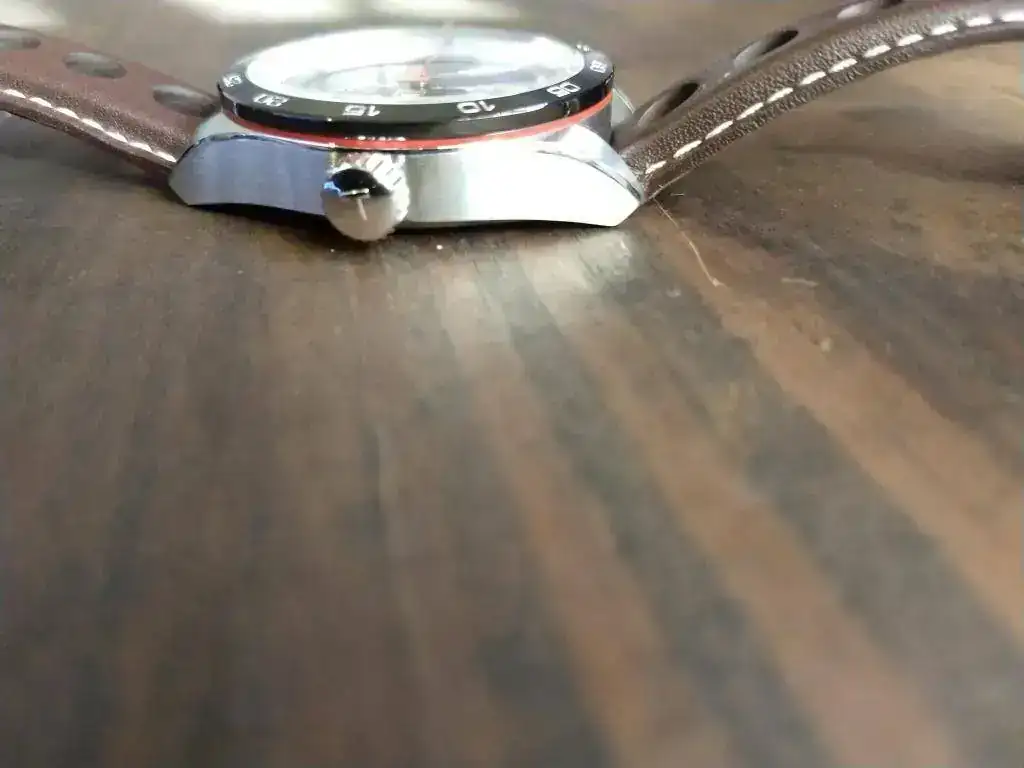 La trasera, sencilla. Estaría bueno que tenga algún grabado, aunque sea el escudo de la marca que es muy vistoso. Cumple con lo que és. Roscada, al igual que la corona.