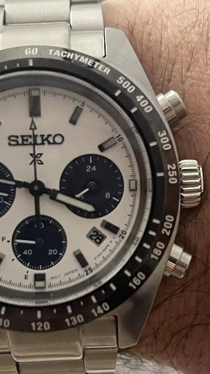 Un reloj del que se ha escrito mucho en el foro , y con el que creo seiko ha dado en el clavo , 39 mm de diámetro ( perfecto en mi opinión ) con estética Daytona , lo han denominado irónicamente ( seitona) . Es un reloj tremendamente cómodo , con un dial muy visible , gustándome particularmente cómo se hunden las subesferas ( segundos , minutos 60 también sirve de indicador de carga , y 24 horas ) , los pulsadores me parecen muy cómodos y transmiten calidad .