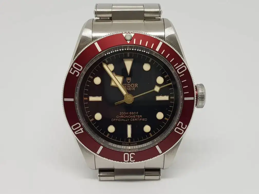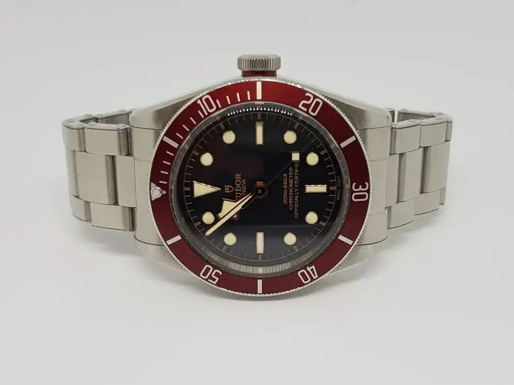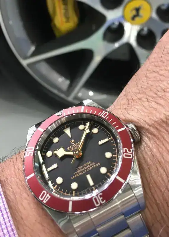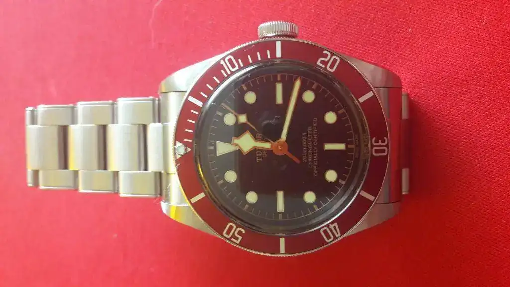 Enhorabuena y a disfrutarlo.Hola Compañeros, como prometí una vez dado el paso os presento en sociedad a mi nueva adquisición. Es el conocido Tudor Heritage BB con bisel Burdeos y las archiconocida agujas "snowflakes" (que lo mismo levantan pasiones que no) y sus agujas de oro. En el dial han vuelto a poner el emblema del escudo y dejan la Rosa para la corona (menos mal, porque este emblema es la caña). Destacar el brazalete simulando los remaches de los antiguos y primeros Tudor y por su puesto su nuevo calibre manufactura con 70 h de reserva y espiral de silicio. Un relojazo donde los haya.