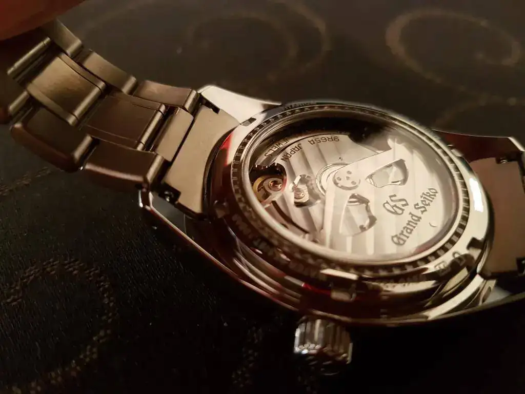 No se aprecia muy bien en la foto, pero en el zafiro posterior está grabado el logo de Grand Seiko