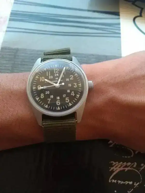 Brutal!!Soy un gran fan de este reloj. En general Hamilton me encanta.Entre otros Khakis tengo este de los 70 Ver el archivos adjunto 728669 Por cierto, qué cojonuda le queda la correa verde de 2 piezas