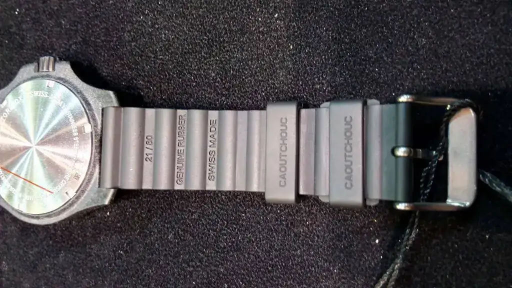 Uno de los que más me gustó fue el INOX de color gris, con caja de titanio, muy bien la combinación de colores de la esfera, correa y caja, a destacar el grosor de la esfera que podemos apreciar en la ventana de fecha: