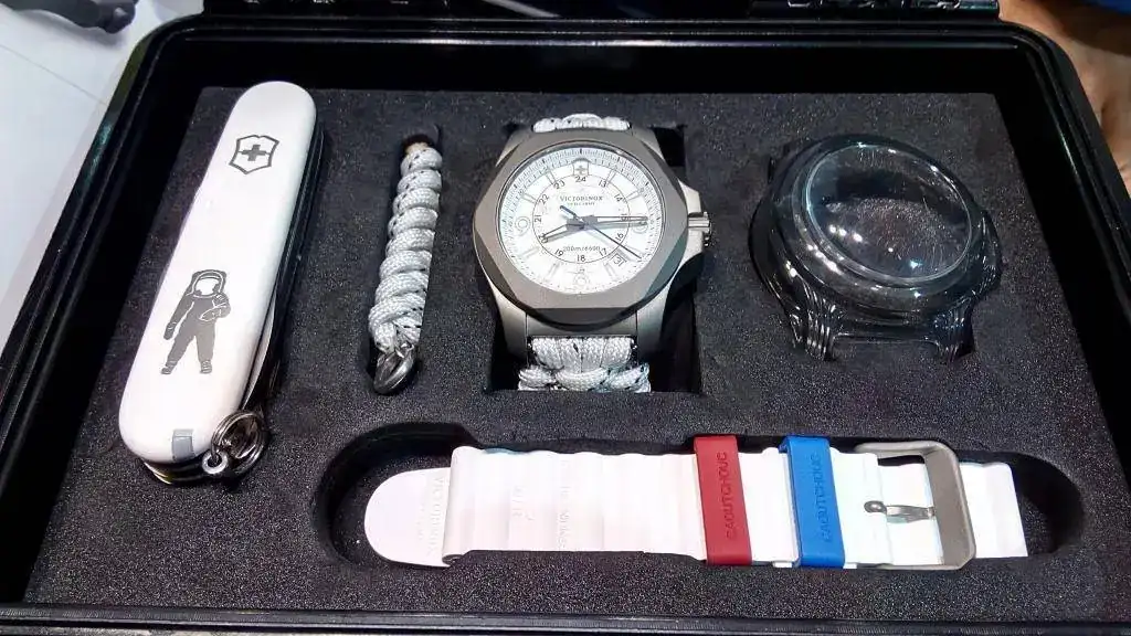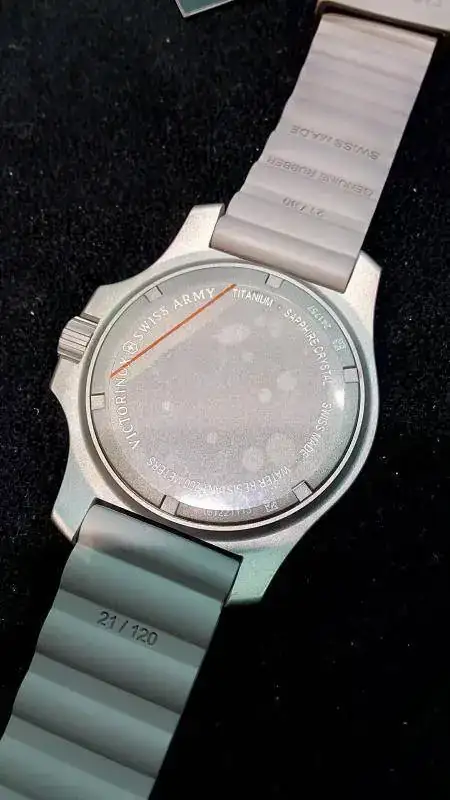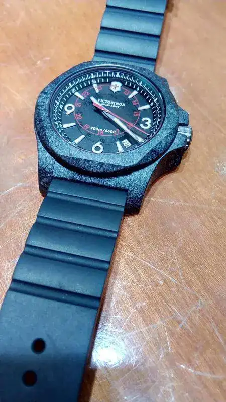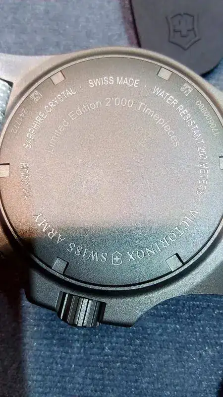 Madre mía!! solo el sonido que hacía el reloj al chocar contra el suelo y deslizarse por él ya te los ponía de corbata; en presagio de malas consecuencias...pero no. El reloj aguantó estoicamente el maltrato, y con nota. Ni cristal roto, ni manecillas sueltas por la esfera - de hecho los cañones del calibre están reforzados ex profeso- ni nada. Cierto que en algunas partes del bisel y la tapa trasera se veían marcas, pero claro, era una unidad destinada especialmente para demostrar la resistencia del reloj. A posteriori el representante de Victorinox nos comentó que esa misma unidad había sido pasada por encima por varios coches. esos relojes so duros de verdad. Sobre las características técnicas tampoco voy a escribir lo que ya se puede encontrar en la web, prefiero comentar las impresiones que me dieron.