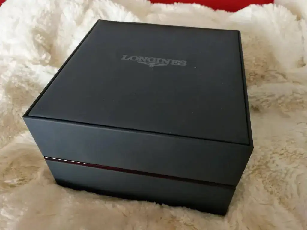 La caja es la de siempre de Longines. Muy bonita. Libro de garantia y pincho para el cambio de fecha. No hago fotos por que lo tengo en casa de un amigo.
