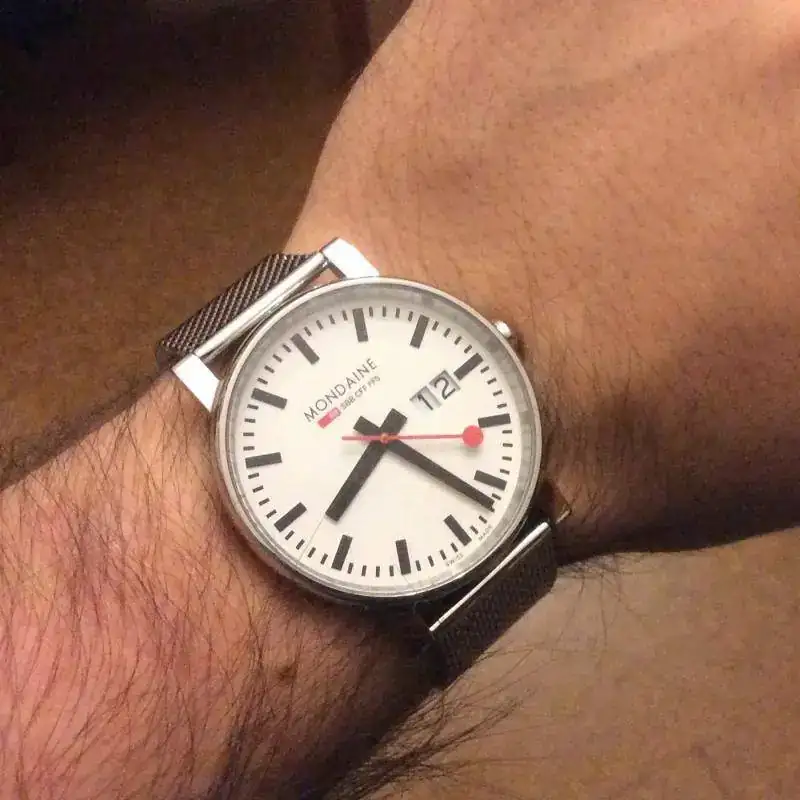 Enhorabuena compañero, como quedarian los 40 mm de ese Mondaine en una muñeca de 16?