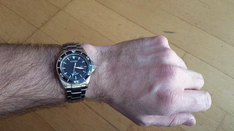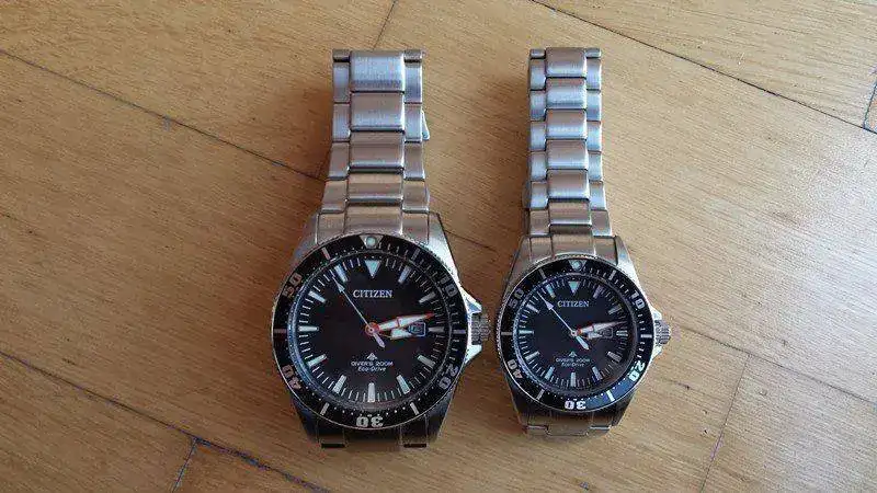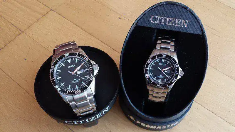 Citizen también tiene otro diver con versión femenina, el BN0150. Escogí el BN0100 porque me parece más elegante, más clásico, sobrio, menos aparatoso: más ponible, en definitiva, y especialmente en la versión de señora. La minutera naranja le da el puntito deportivo justo para no desentonar.