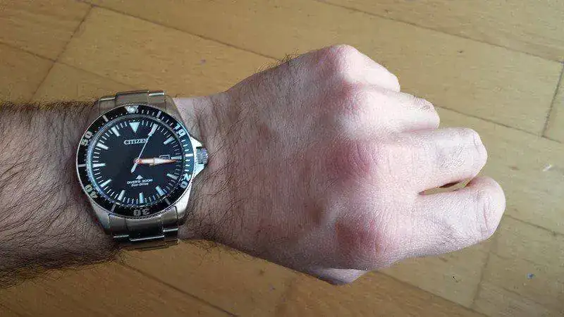 - Corona: la corona en general está bien. Funciona correctamente, viene firmada con el logo Promaster, está bien protegida...PERO el estriado que tiene y lo que sobresale del guardacoronas hace que si el reloj se lleva suelto en la muñeca se clave, o más bien roce, hasta resultar molesta en el dorso de la mano.