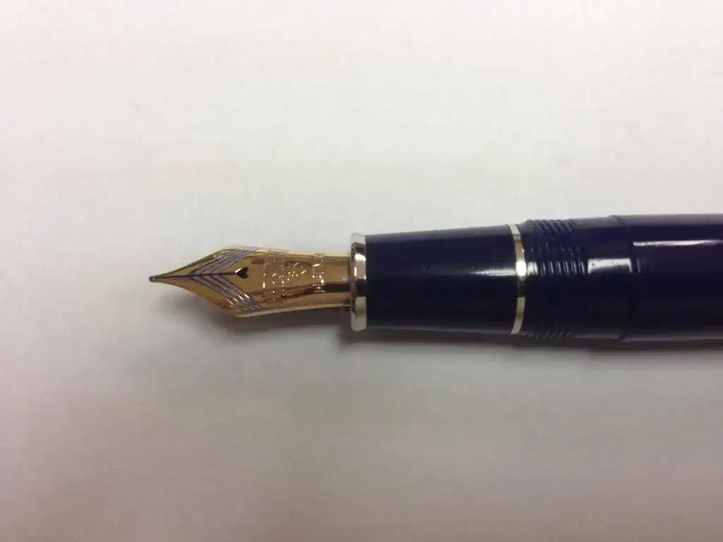Tenía dudas sobre el punto, y al final escogí el punto M. Bueno, deciros que cumple con mis expectativas sobradamente. Se desliza muy bien sobre papel, con más sonido que la Montblanc, aunque ésta tiene muchos Km de tinta y su plumin ya está hecho a mi cursiva; el flujo es constante y uniforme. La tinta que uso es la Platinum Pigmentada Azul. Tarda un poco más en secar que la Waterman azul que uso en la Montblanc. Demasiado azul...