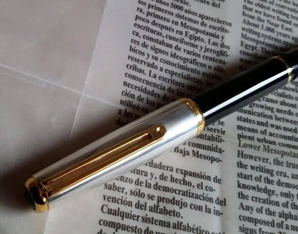 Inoxcrom Sirocco, capuchón de plata, barril de resina negra, según parece una edición especial desarrollada en Y para el mercado holandés en conmemoración de un acontecimiento acaecido en el pasado, llamado “Volk van Nedelanden” según me explicaron el capuchón plano significa la constatación de la belleza Y colorido de las increíbles tierras Y planicies de los Paises Bajos