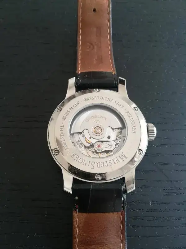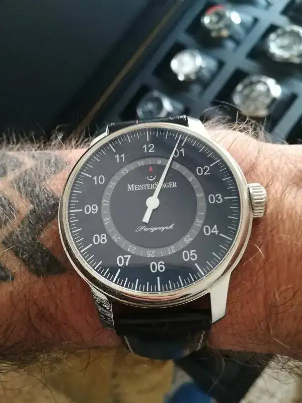 Participo en el hilo con mi MEISTERSINGER PERIGRAPH que monta un calibre ETA 2824.