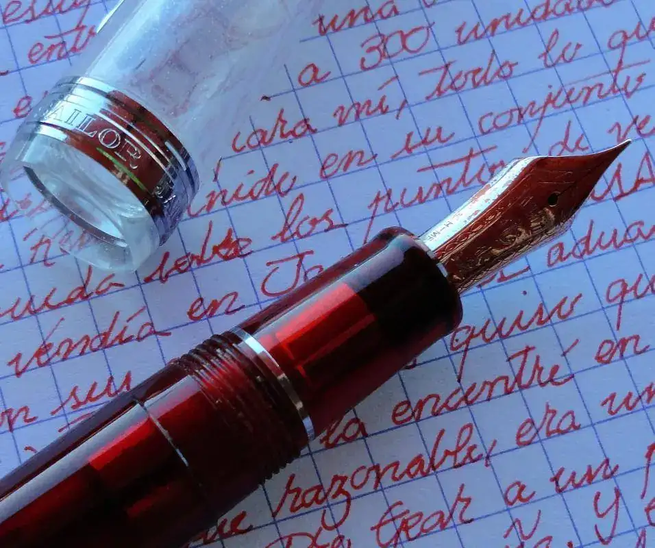 La escritura es suave, aunque en un tamaño FM (entre fina y media) tiene por supuesto un feedback que puede no resultar agradable a gente acostumbrada a escribir con plumines más gruesos europeos. A mí me parece excelente. Hay gente que dice que la sensación de escribir con una Sailor se parece a escibir con un lápiz y yo lo suscribo. Es como escribir con un lápiz recién afilado, con una sensación de control absoluto, pero que a la vez se desliza sin esfuerzo. No se si alguien más estará de acuerdo conmigo en esta descripción...