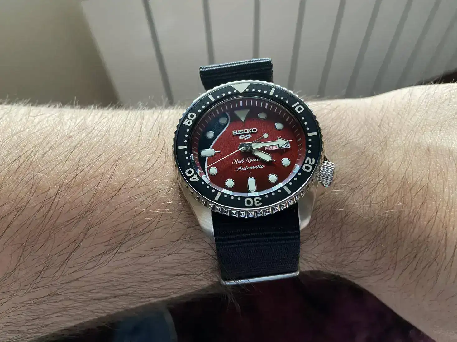 El reloj es chulo, pero no termina de llenarme, quizás me esperaba el reloj de otra manera, no se si por el color más vivo, (sabiendo que no era rojo tipo ferrari obvio), o la correa tan larga, (y eso que mi muñeca es de 18-18'5), o realmente no hay feeling, no se que me ha pasado, lo abrí y casi que lo volví a meter en la caja al minuto, lo he vuelto a sacar para hacerle una foto para un amigo y lo he vuelto a guardar...
