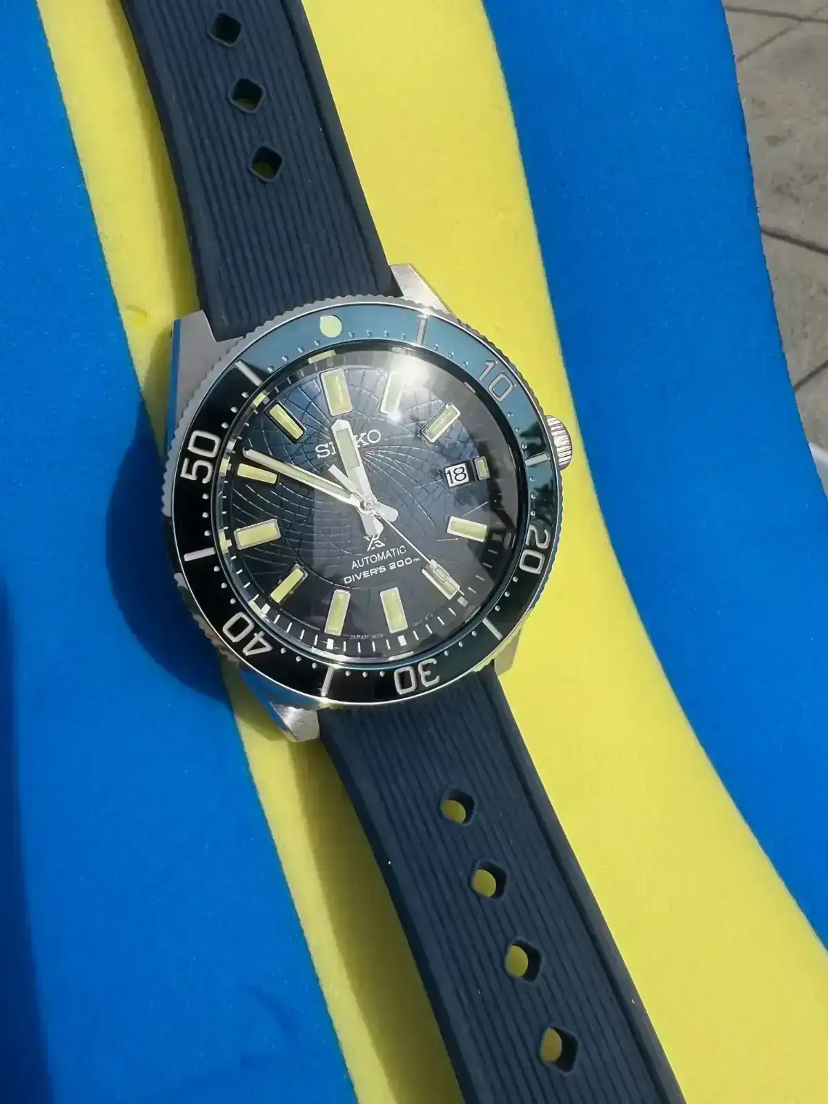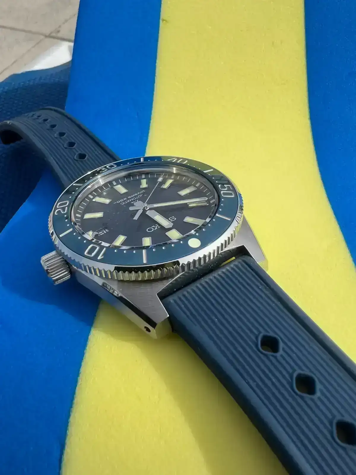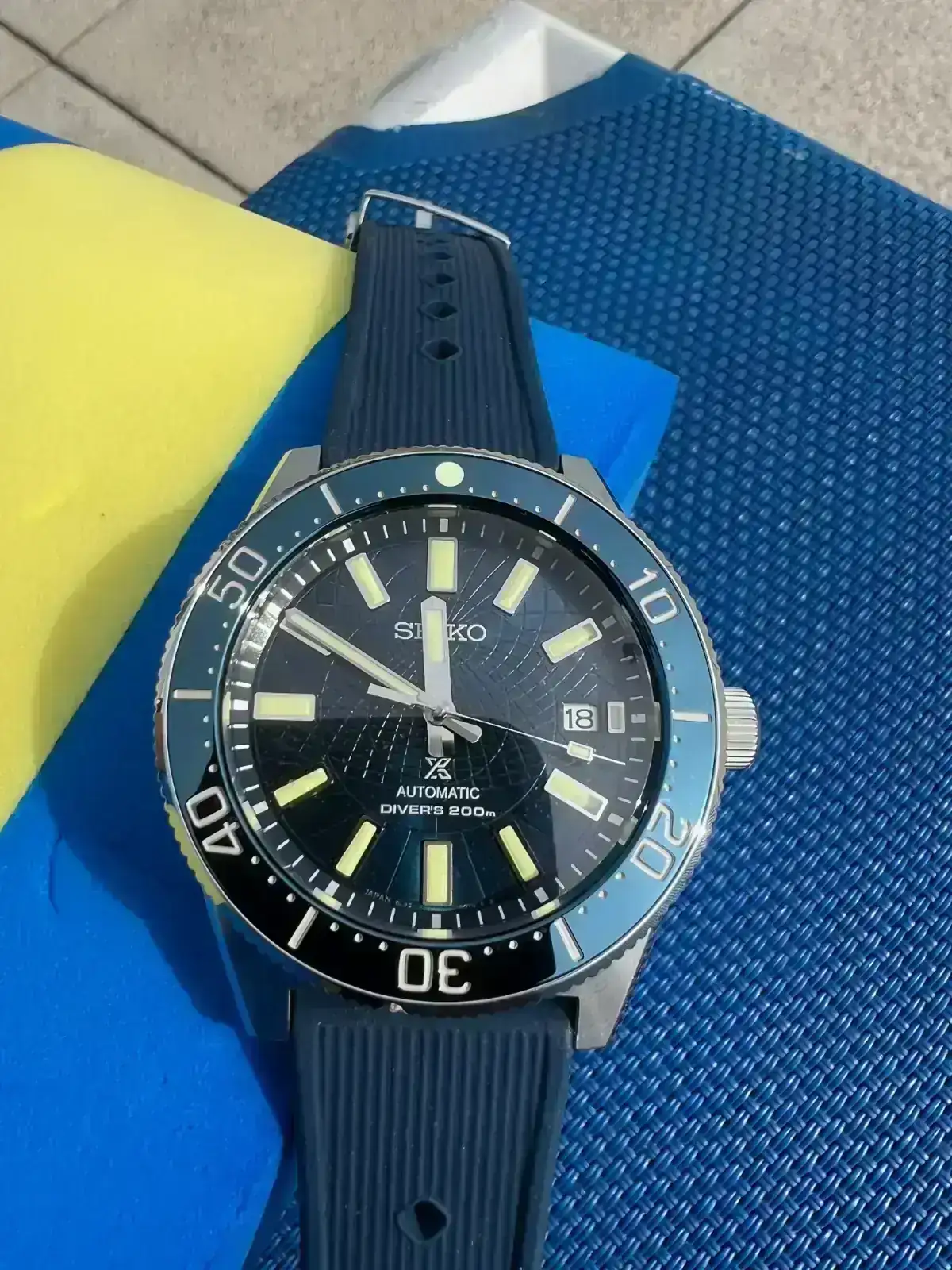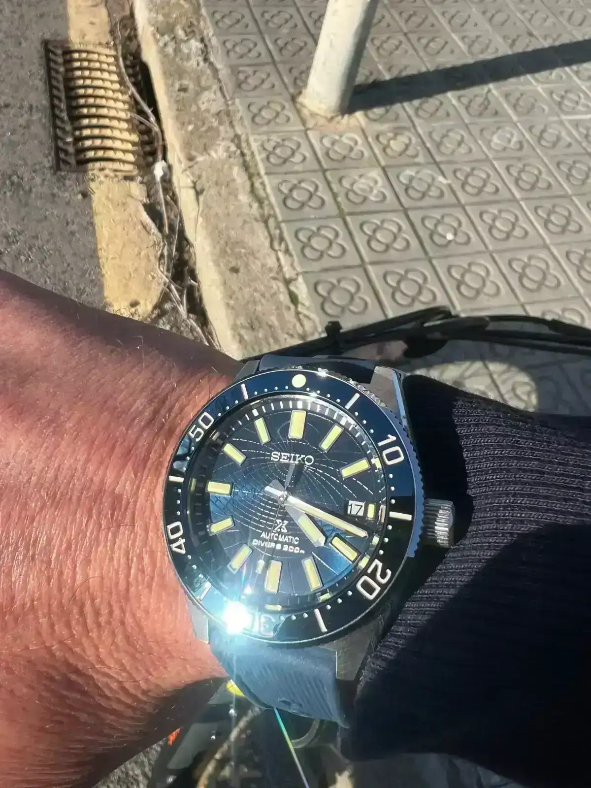 El verano pasado compre mi primer Seiko con el que no hubo match en mi muñeca. A pesar de ello, en navidades quise dar una segunda oportunidad a la marca y me decanté esta vez por un reloj de buceo. El escogido fue un SPB147, del que solo tengo buenas palabras. Hasta el cuestionado calibre 6R35 me toco afinado a la perfección y estoy en +1s/día, si no le doy caña y me lo llevo a la piscina. Tras participar en el foro Seiko posteando mi reloj, tuve muy claro que la siguiente pieza Seiko sería también de buceo y con esfera azul. Me gustaron un par de relojes posteados por compañeros con esfera azul, aunque los tamaños de caja iban a ser un problema, ya que hablamos de 45/44mm. A pesar de ello, hace 2 sábados me fui a la boutique Seiko en Barcelona a probar los que iban a ser futuribles. El SPB321J1 de 45mm me lo veía enorme al igual que el otro SLA de 44mm que había visto por el foro. Como tenían expuesto el SLA065, me dio por probármelo, primer error, ya que, pese a tenerlo visto en fotos de propagada de Seiko, su esfera “astrolabio” no me gustaba en absoluto y lo que fue un probar por probar, se convirtió en un flechazo. Normalmente suele ser al revés, voy con unas expectativas muy altas y una vez en la muñeca me suele decepcionar. Esta era la primera vez que un reloj, por el que no daba ni un duro, me hacía ojitos.