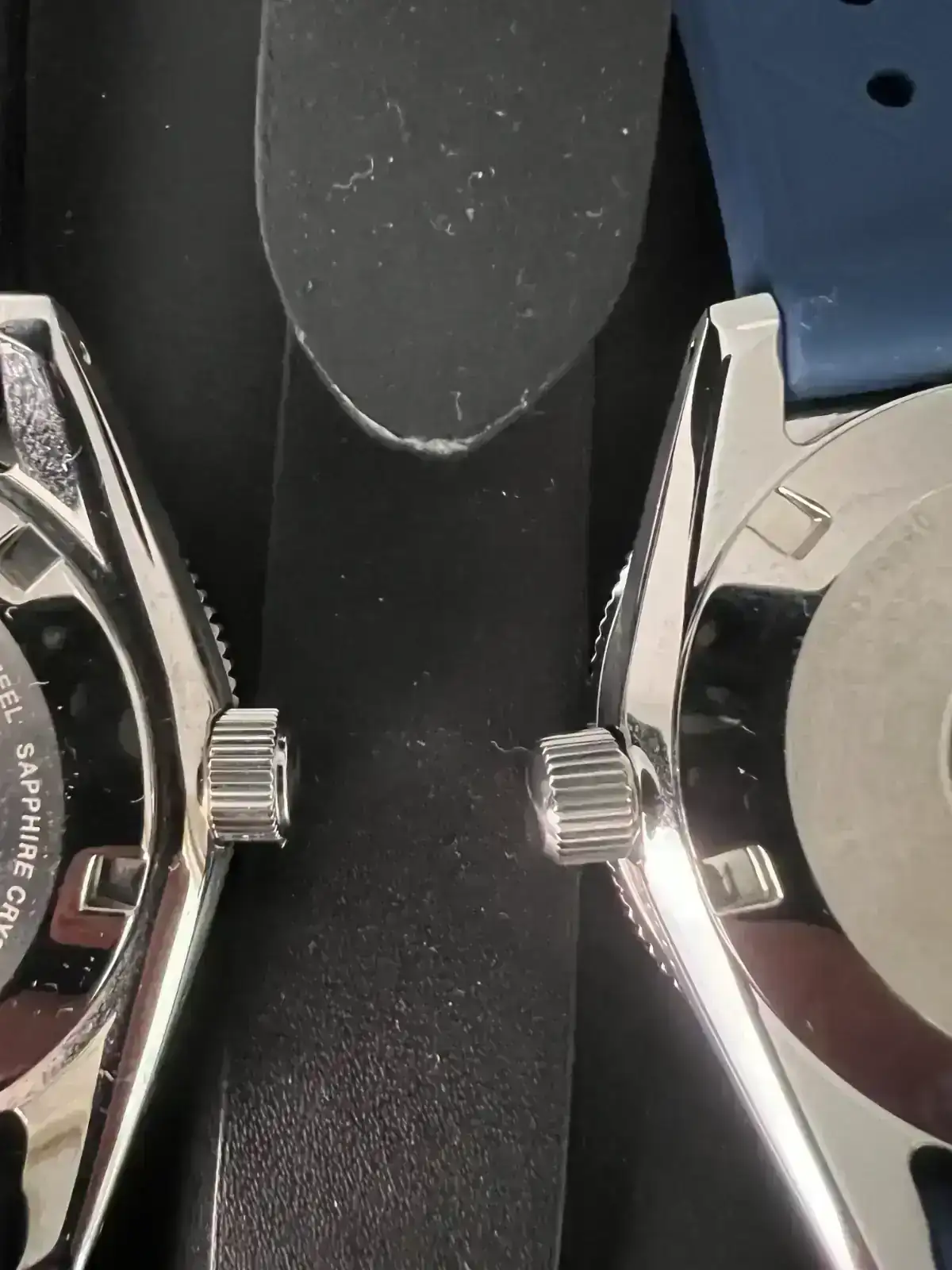 EL BISEL, es un poco más ancho que el de los modelos SPB y al igual que la caja lleva un pulido a espejo que acentúa aún mas los brillos de la caja. Si a esto le unimos un disco azul brillante, el espectáculo en la muñeca está servido.