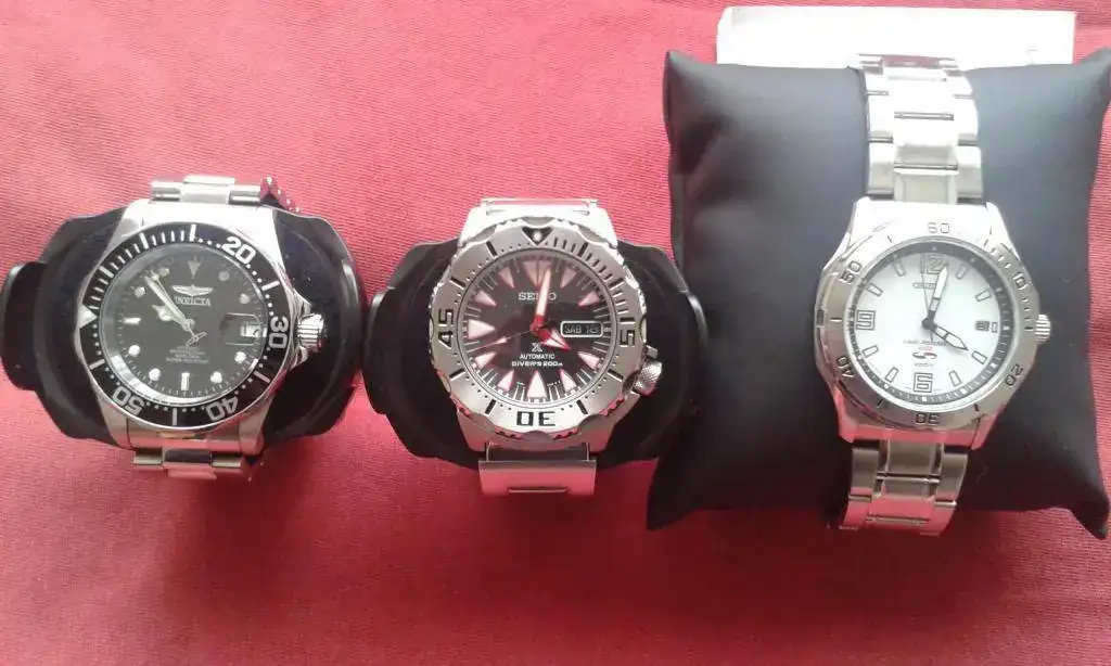 El de la derecha es el Invicta 8926 y, el de la izquierda un Orient FWE00003W solar que aunque no tiene el "sello" de diver es un 200m de corona roscada.