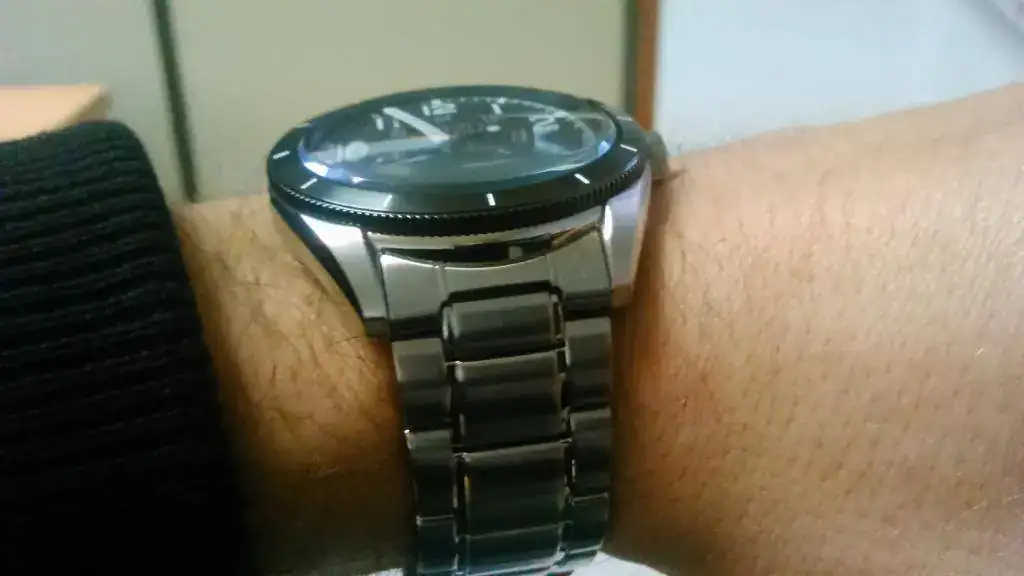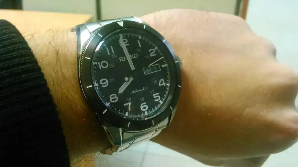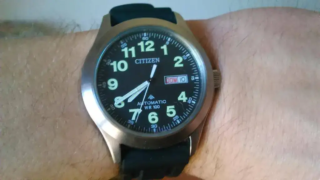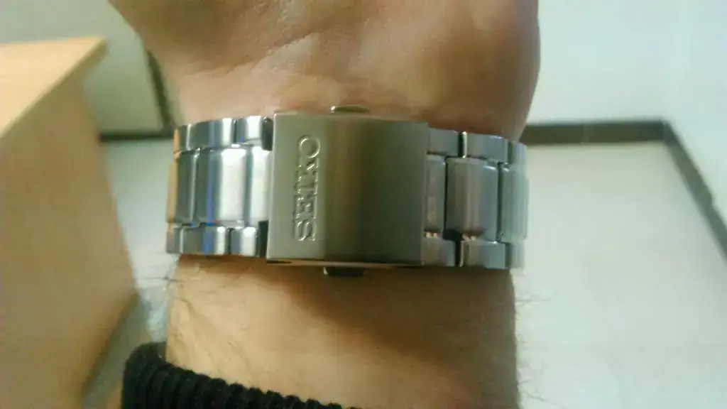 En cuanto a las sensaciones son muy buenas. Tenía dudas en cuanto al bisel, pero al verlo en vivo se disiparon completamente. Me sorprendió el brazalete, ya que a pesar de tener los eslabones sólidos es muy ligero y flexible. Los terminales también me sorprendieron, porque aunque son de chapa doblada están perfectamente encajados y no hay nada de holgura. El cristal abombado le da un aspecto precioso y una legibilidad asombrosa. también destaca su comodidad, no es nada pesado y se adapta perfectamente. El punto negativo sería la falta de lumen en los números, ya que solo lo tiene en las agujas y en los índices al lado de los números, pero cumple su función mucho mejor que, por ejemplo, el Citizen NH6050 (que tiene lumen en números y agujas, pero el de las agujas dura un suspiro y de noche no se ve la hora, solo los números