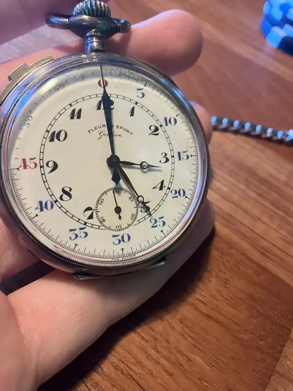 Probablemente el reloj más exclusivo de mi colección, muy interesante y bonito, además de mi único cronógrafo. Un Fleurus Sport, cronógrafo suizo de cuerda de, si no me equivoco, los años 30-40. Era el reloj del padre de la madrina de mi hermana, un árbitro profesional de fútbol (https://www.bdfutbol.com/es/r/r600240.html). Se lo compró para trabajar, es un reloj que cronometró varios clásicos Madrid - Barça, playoffs de ascenso a primera división, derbis, Copa del Rey que en ese momento se llamaba Copa del Generalísimo, y partidos de permanencia en 2ª que se hacían en esa época.